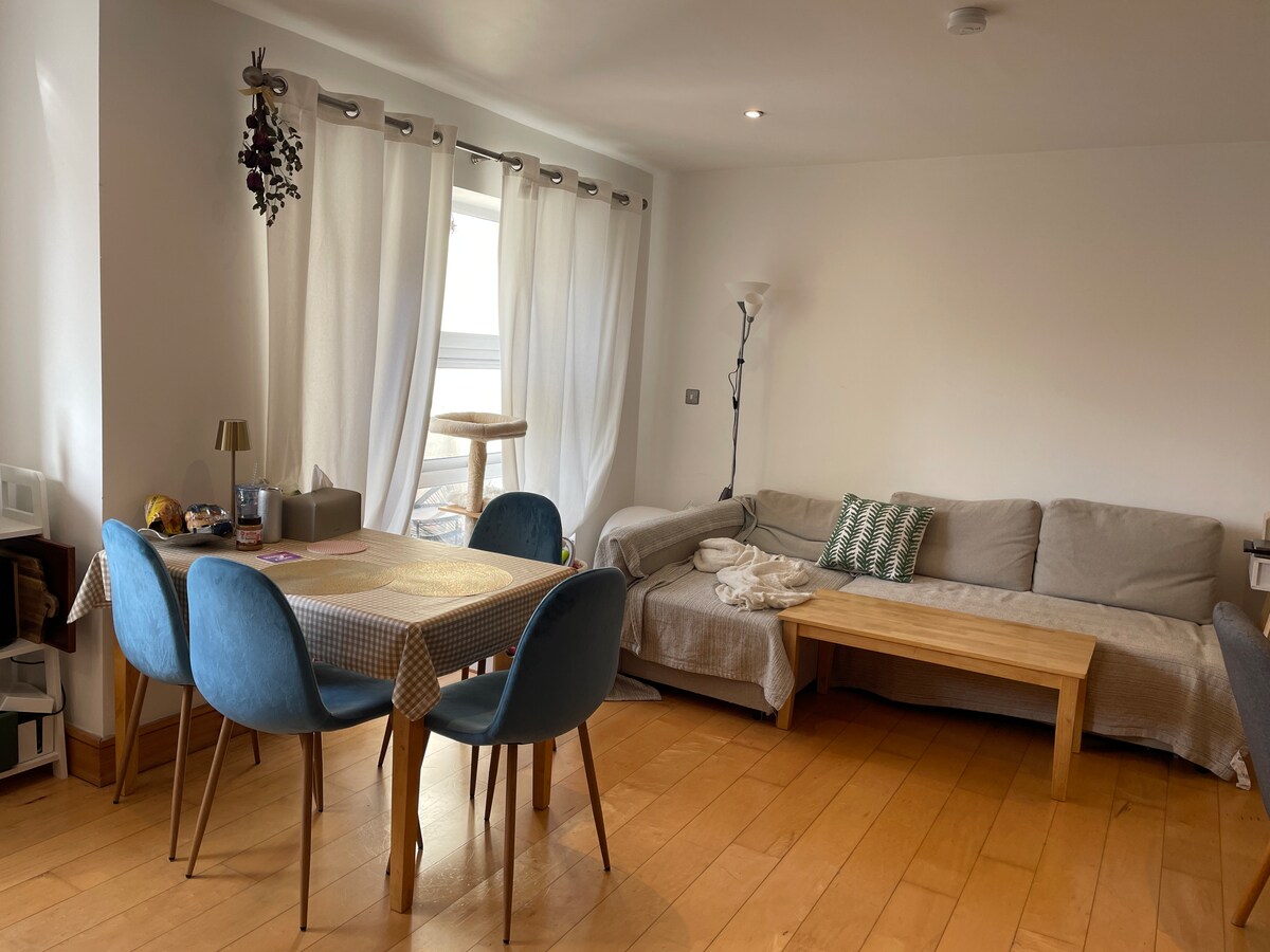 Nằm trong một khu phức hợp có cổng, căn hộ 2 giường mê hoặc của chúng tôi mang đến sự thoải mái và yên tĩnh. Là chủ nhà của bạn, bản thân tôi và bạn đời của tôi, chúng tôi thường xuyên làm việc, mang đến cho bạn sự riêng tư phong phú. Khám phá nhà tắm chung với vòi sen điện tiếp thêm sinh lực. Nhà bếp và phòng khách có không gian mở pha trộn liền mạch, trong khi ban công Juliette thêm nét quyến rũ (chỉ ngắm cảnh). Phòng ngủ của bạn tự hào có một tủ quần áo lớn và két an toàn cho đồ đạc của bạn. Đặt căn hộ thư giãn của chúng tôi để có thời gian lưu trú đặc biệt tại Thành phố Cork!