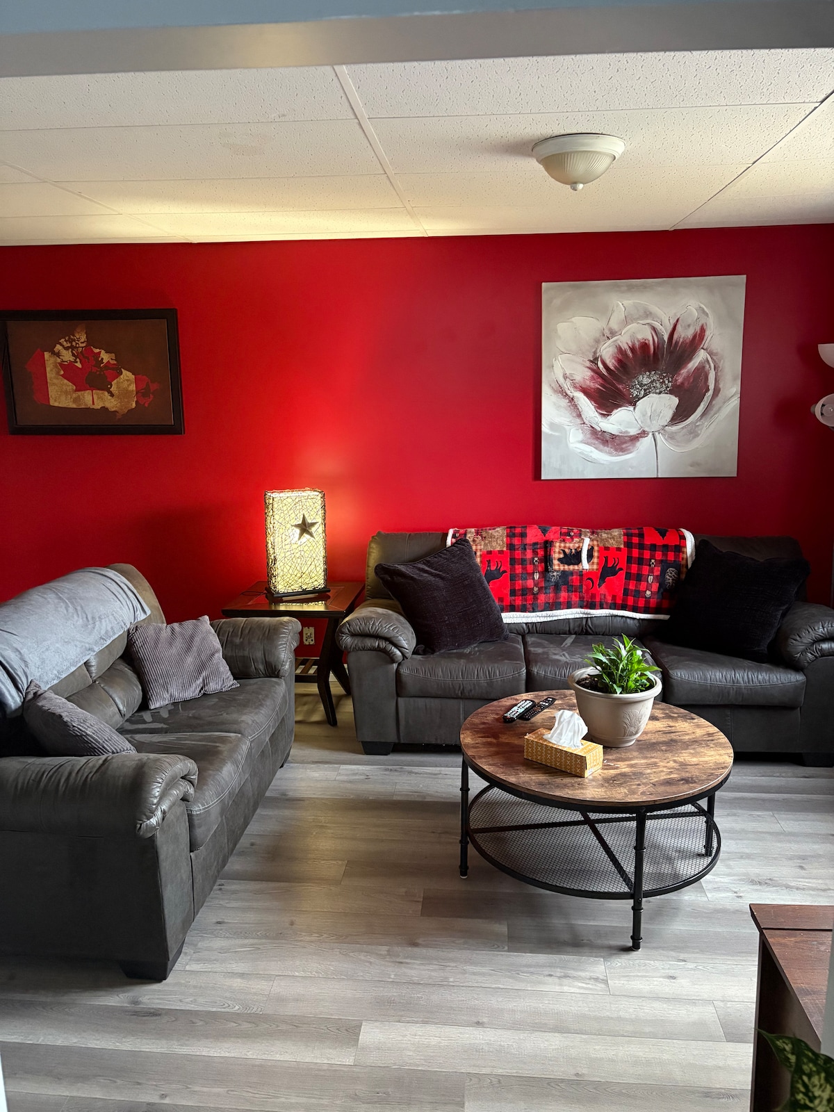 Căn hộ 1 phòng ngủ nằm ở Massey Drive. Cho thuê bao gồm giường đôi với ga trải giường bổ sung, phòng tắm rộng rãi, khu vực sinh hoạt thoải mái và sạch sẽ với TV Fibe, Netflix, Prime, bao gồm wi-fi. Bếp nhỏ có tủ lạnh mini, lò vi sóng, lò nướng bánh mì, Keurig, ấm đun nước, máy làm mát nước, bát đĩa. Lối vào riêng. Thân thiện với thú cưng.