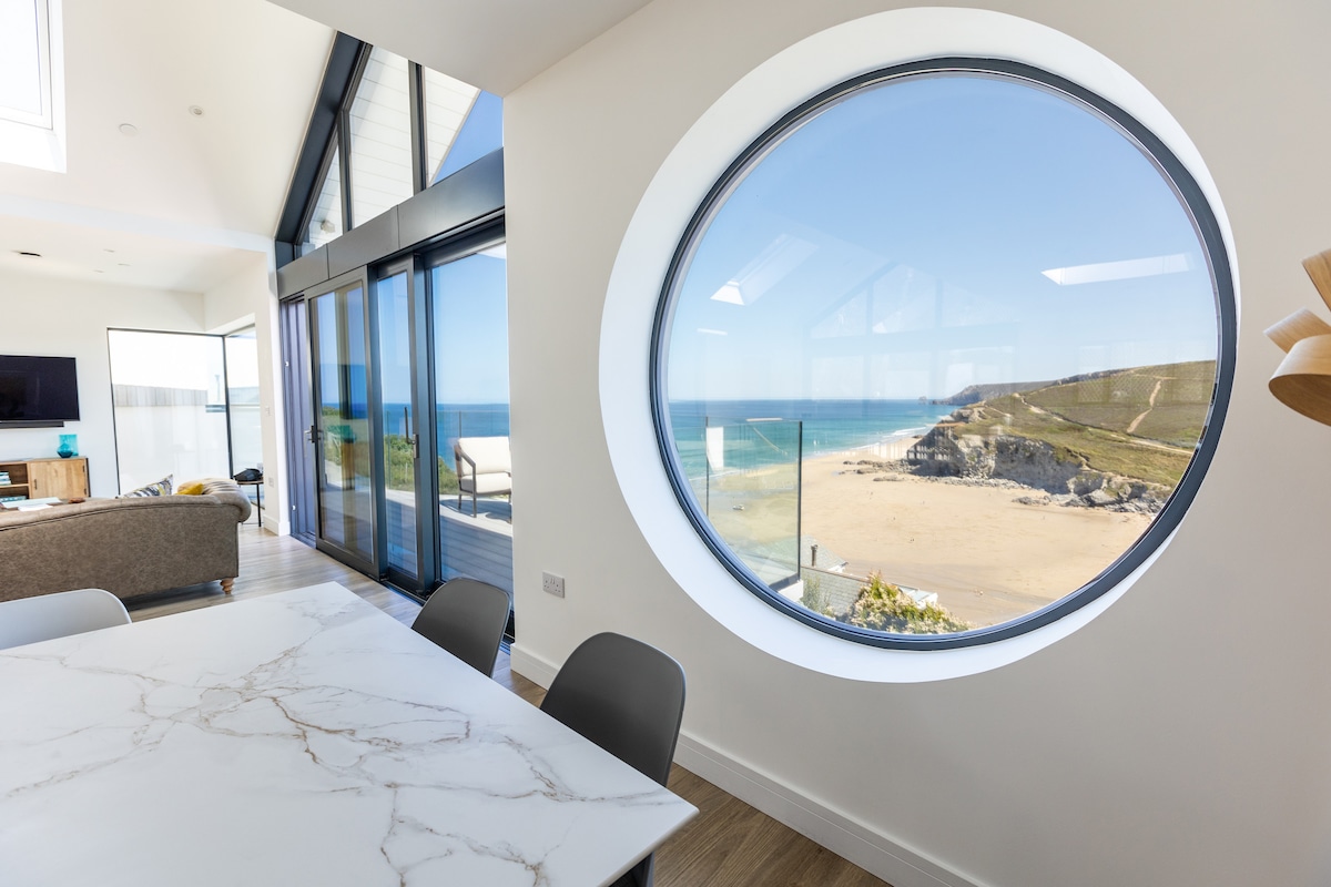 A stones throw from the waters edge your beach apartment has spectacular ocean views over Fistral beach and miles beyond up the Cornish coast. This cosy flat was fully renovated for a modern comfortable relaxing beach break. Ideal for a couple or a solo visitor. The beach is minutes walk through the picket fence at the bottom of the garden. The sound of the waves below is all you will hear on the peaceful Marine reserve of Pentire Headland.