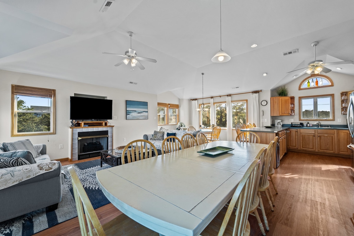 Nestled in the heart of Southern Shores, our house is tucked away from the typical hustle and bustle of the resort areas of Kitty Hawk, Kill Devil Hills, and Duck, while being close enough for walk to the beach! A 15-minute bike ride into the town of Duck (2 bikes provided) will provide an afternoon with your friends and family, without the headache of traffic and parking. The house has dedicated workspace, gas fireplace, 42-inch HDTV with YouTube TV, sound system, and fiber internet WiFi.
