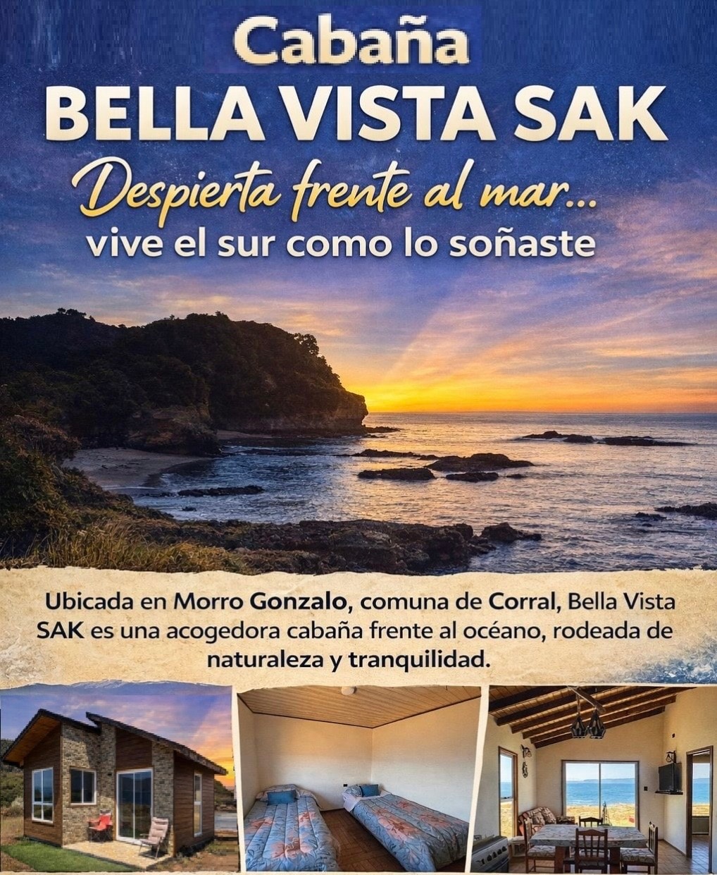 Acogedora cabaña con vista al mar, equipada para 4 personas más un opcional en sofá cama. Cuenta con refrigerador, cocina y utensilios. Agua caliente, calefacción y Wifi. Ubicada en la Ruta de la Selva Valdiviana, a pocos minutos del Parque Nacional Alerce Costero. Su ubicación permite acceder muy rápidamente a diferentes atractivos turísticos, como el fuerte de Corral, playas, lagos, lagunas, esteros.