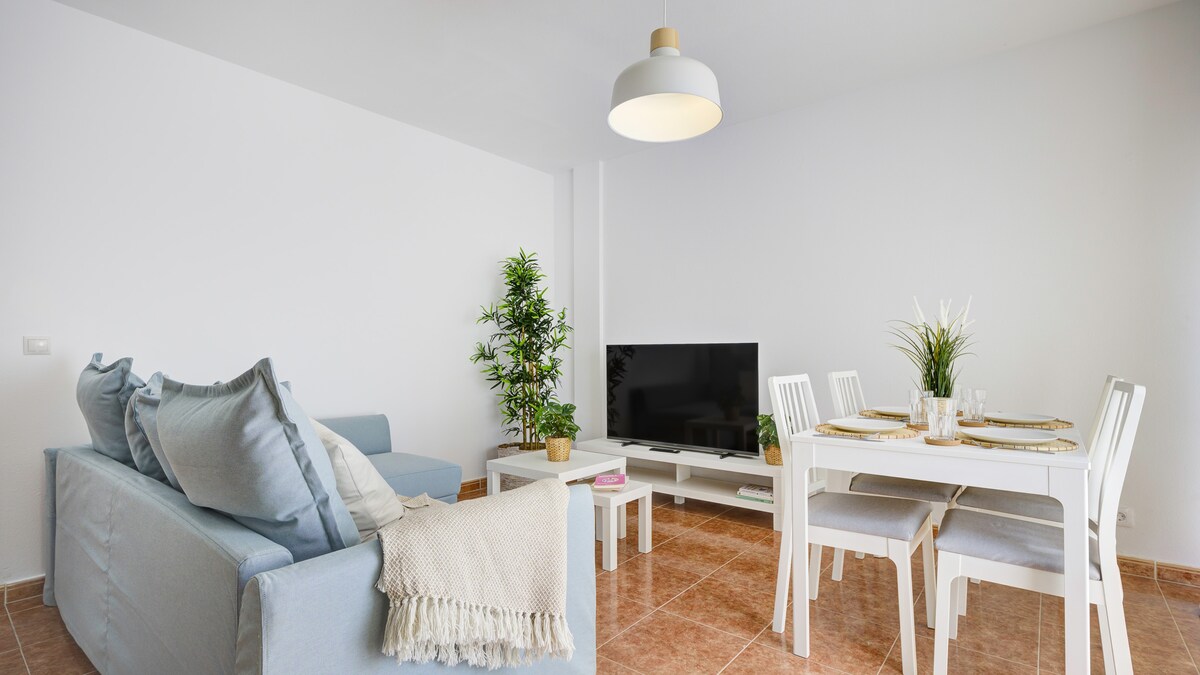 Căn hộ có 2 phòng ngủ, mỗi phòng có giường đôi rộng 150cm và tủ quần áo lớn tích hợp, bếp đầy đủ tiện nghi với máy giặt và máy rửa chén, phòng khách rộng rãi với TV, ban công riêng và sân thượng chung lớn ở trên cùng của tòa nhà, với ghế sofa, ghế bành và tầm nhìn ra đại dương. Nó nằm ở tầng một, trong một khu vực rất yên tĩnh của Corralejo, chỉ cách biển 100 mét. Wifi 180Mb/s theo bài kiểm tra tốc độ. Đã bao gồm Netflix miễn phí.