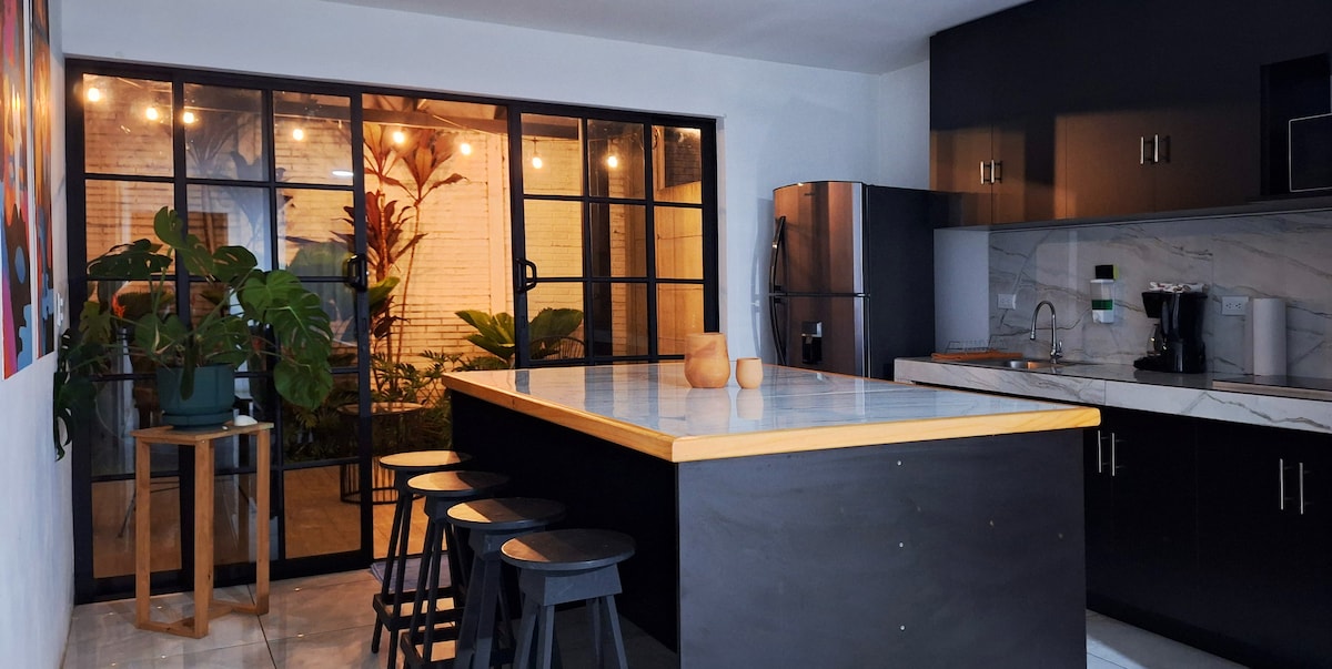 Được thiết kế đặc biệt để mô tả những người dùng Airbnb của chúng tôi bằng cách cung cấp cho họ những không gian sang trọng và chức năng và cảm giác hòa mình vào thiên nhiên sẽ đáp ứng nhu cầu đó cho sự yên bình và thư giãn. Nằm ở vị trí chiến lược chỉ cách trung tâm thành phố La Fortuna 5 phút, căn hộ này có hồ bơi/bể sục riêng trong nhà, tầm nhìn đẹp ra Núi lửa Arenal từ ban công và nhà bếp, điều hòa nhiệt độ trong phòng, cũng như phòng tắm với vòi sen mở với mái kính.