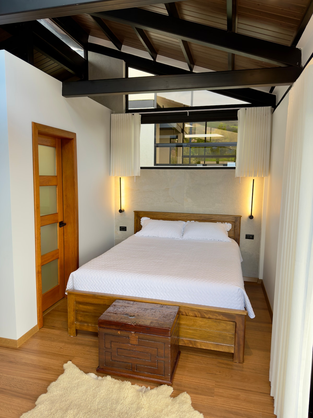 Un refugio cálido y moderno en medio de montañas, de los paramos andinos , rodeado de naturaleza, flores y vistas espectaculares. Esta casa de diseño rústico-industrial combina grandes ventanales, muros de ladrillo y techos de madera para ofrecer una experiencia acogedora y luminosa. Ideal para desconectar, descansar y disfrutar de atardeceres únicos desde la sala o la comodidad de la habitación. Cada rincón ha sido pensado para que te sientas en paz, inspirado y en conexión con el entorno.