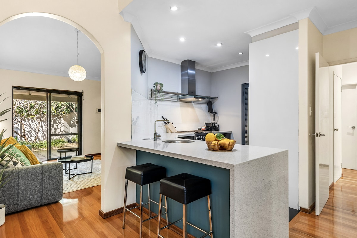 Căn hộ hiện đại, được trang trí đẹp mắt, riêng tư nằm trước một chỗ ở Cottesloe yên bình. Lối vào của riêng bạn và không có tiện nghi chung. 10 phút đi bộ đến bãi biển Cottesloe, ga tàu và các cửa hàng địa phương. 1 phòng ngủ, giường cỡ king, TV thông minh, tủ quần áo không cửa ngăn và phòng tắm khép kín. Bếp riêng được trang bị đầy đủ tiện nghi và phòng khách/khu vực ăn uống, với sân hiên nhỏ và BBQ. Điều hòa ngược chu kỳ trong toàn bộ căn hộ rộng rãi này. Chúng tôi cung cấp mức giảm giá theo tuần và theo tháng. Chỗ đỗ xe miễn phí cho 1 xe.