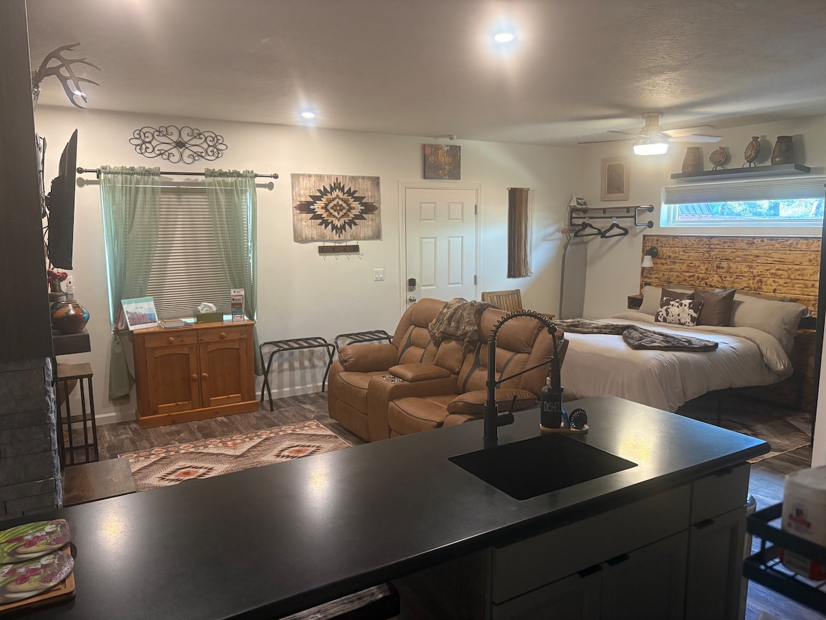 Eagle point studio located off hwy 260! This home away from home is perfect for couples, solo travelers, and small families looking for a breezy place to stay for their next escapade to Arizona. Located 20 miles from Sedona, 15 miles to Jerome, and 2 miles from downtown cottonwood. Private backyard is perfect for DOGS and fully enclosed. Check amenities list. Please note this studio is located right off hwy 260. A busy roadway.. Best fit for three adults or two adults and two kids. We allow 4