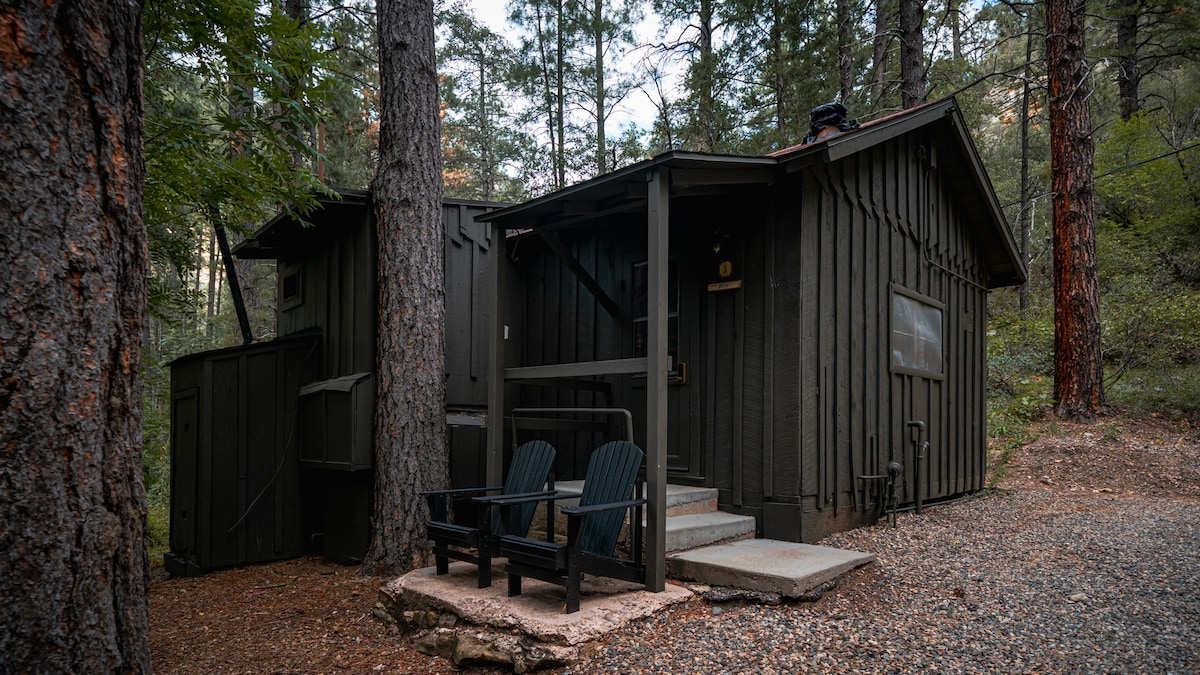 A tranquil, simple, historical cabin in Oak Creek Canyon, near Indian Gardens Cafe. Located on the backside of a 1950's trailer park, our space is vintage, eclectic, and fun-built in the 30s by my great-grandpa. 100 yards from the water, our lovely wooden deck- is surrounded by trees, birds singing and good energy. No Sedona fakery! Only good vibes. Hear the creek, swim, hike and enjoy provided morning coffee and amenities. If you love nature and camping this place is for you.