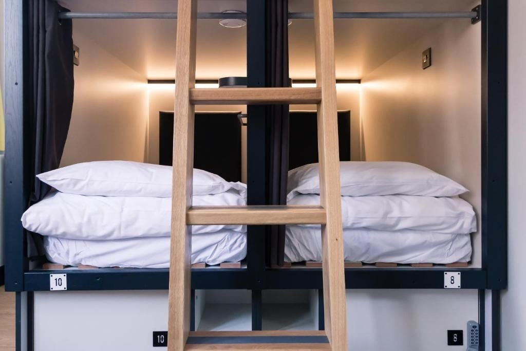 Chào mừng bạn đến với Astra Hostel – Phòng nhóm riêng ở trung tâm Dublin Astra Hostel cung cấp một cách mới mẻ và hiện đại để ở tại Dublin. Thay vì đặt giường riêng, bạn sẽ tận hưởng phòng riêng của mình cho nhóm của mình, với bố trí chỗ ngủ linh hoạt phù hợp với mọi phong cách. Tùy chọn phòng Phòng viên nang 6 hoặc 8 giường – Cọng ngủ kiểu Nhật kiểu dáng đẹp để tăng thêm sự riêng tư, mỗi khoang có đèn chiếu sáng, điểm sạc và thông gió. (mỗi viên nang đôi có thể được chia sẻ bởi 2 người mang tổng số lên 12-16)