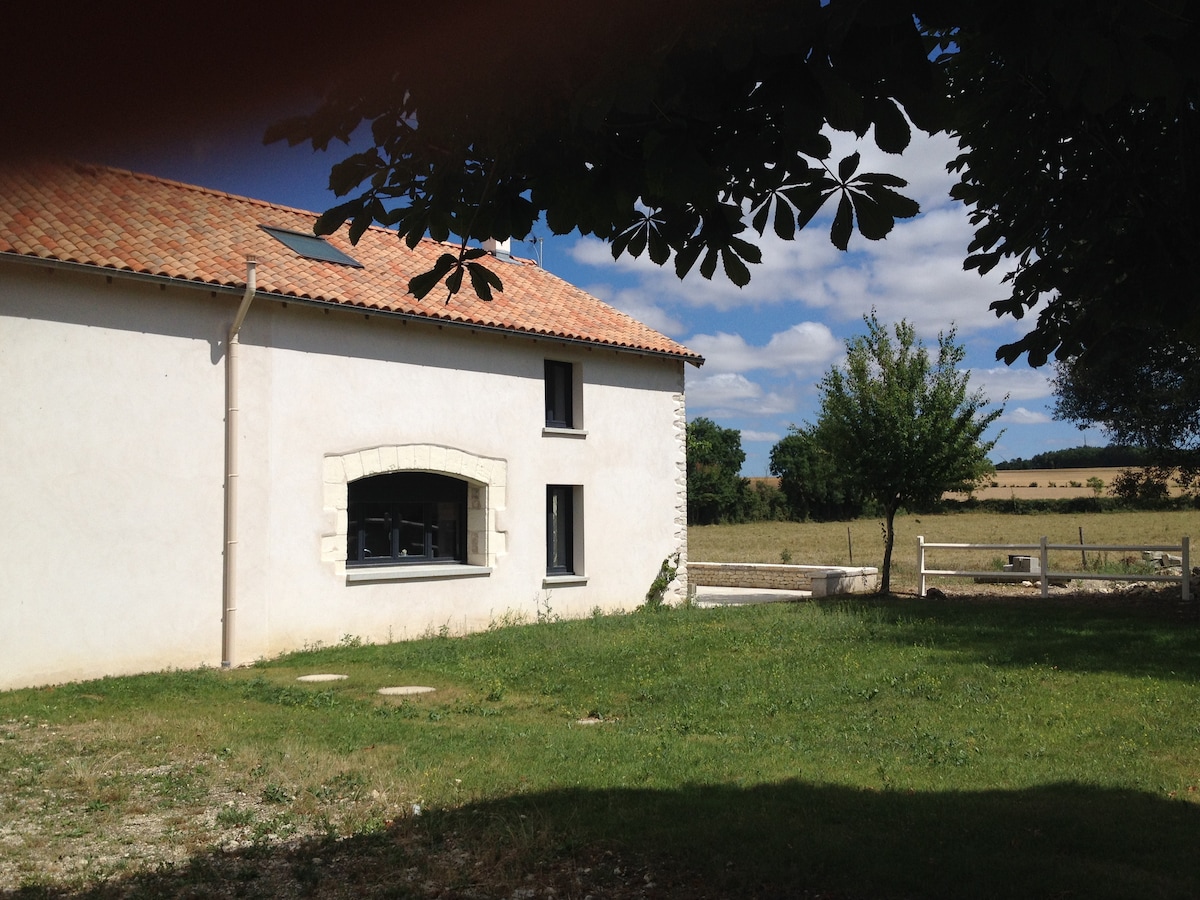 ngôi nhà liền kề một ngôi nhà khác trên một lô đất chung 2000m2 nằm trong một ngôi làng nhỏ Charente, nằm ở vị trí lý tưởng để ghé thăm bờ biển Đại Tây Dương Rochelle, Rochefort, Saints, Cognac, v.v., nằm cách futuroscope một giờ và một giờ 30 từ Puy du Fou