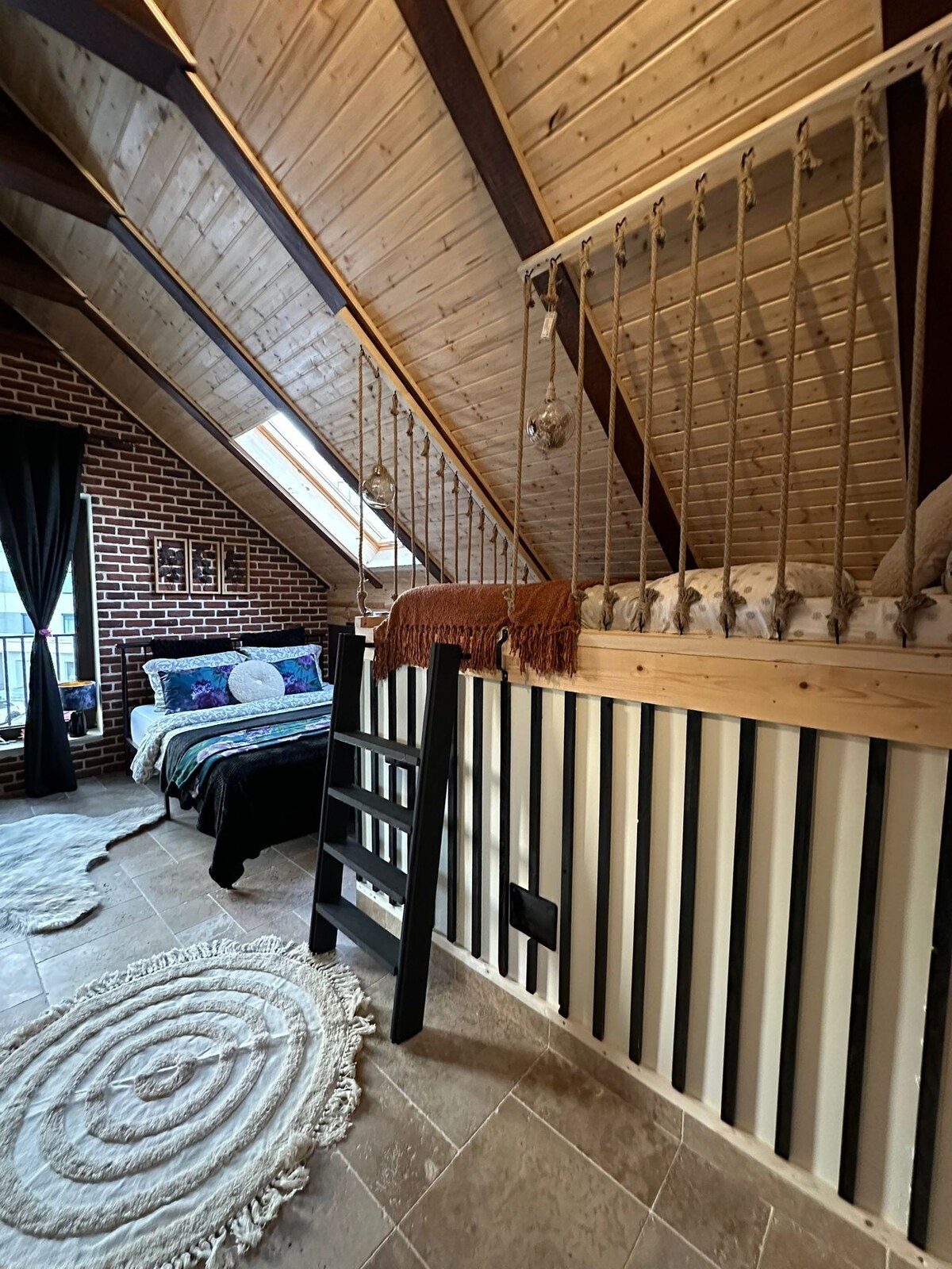 Ở trong studio ấm cúng ở tầng hai này (không có thang máy) tại Vila 2 của Hanul Anei, lý tưởng cho các gia đình có trẻ em hoặc nhóm nhỏ. Studio có giường đôi, giường kiểu nhà trên cây phù hợp cho 1 người lớn hoặc 1–2 trẻ em, phòng tắm riêng có vòi sen và bếp đầy đủ tiện nghi. Tận hưởng sự riêng tư và thoải mái, với bể sục ngoài trời tùy chọn và bãi đỗ xe miễn phí trong sân. Xin lưu ý: ngoại thất biệt thự vẫn đang được hoàn thiện, trong khi nội thất hoàn toàn thoải mái và ấm cúng.