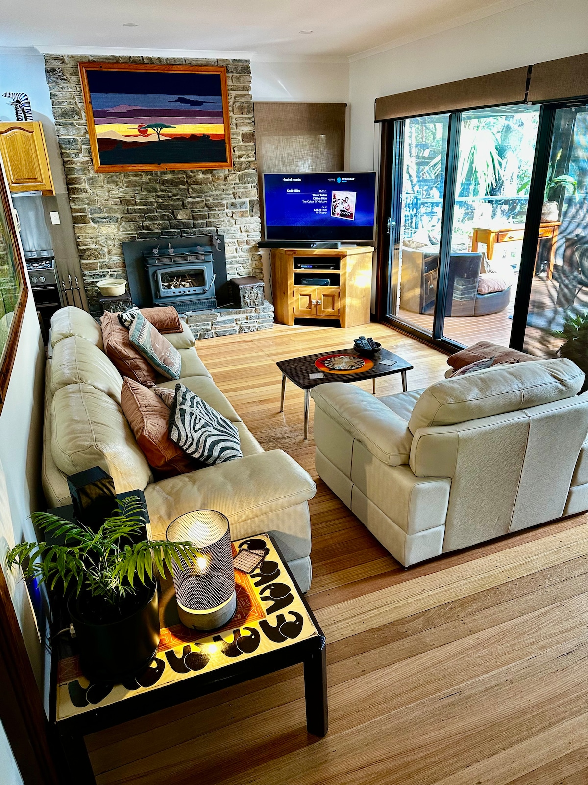 Appleton House, 20 mins from Adelaide, offers beauty, privacy and seclusion. Overlooking bushland, the city of Adelaide and sea, this unique retreat features: light spaces; galley kitchen; 2.5-seater sofa, 65” OLED SmartTV; slow combustion wood heater offering ambience & warmth on the coldest winter nights; native birds & resident kangaroos. Access a myriad of walking trails, restaurants and fine-dining excellence, cafes, bakeries, supermarkets, shops and more close by.
