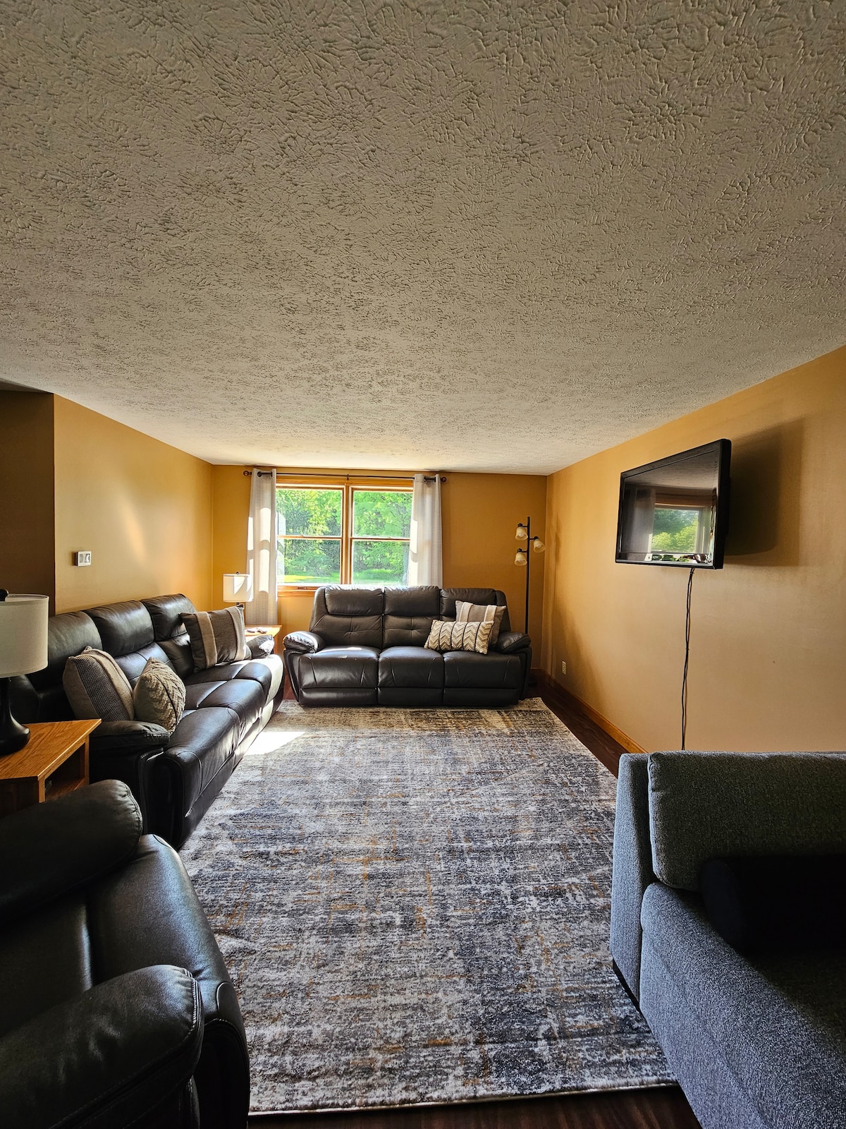 TRỐN THOÁT đến HÒA BÌNH và THIÊN NHIÊN. Sạch sẽ, cuộc sống rộng rãi trên một bán đảo được bao quanh bởi một hồ nhân tạo đẹp, riêng tư. Quang cảnh tuyệt đẹp, âm thanh đáng kinh ngạc của thiên nhiên, Phòng tuyệt vời, trần gác xép, lò sưởi, sân sau, mặt cắt ngoài trời. Wifi TUYỆT VỜI, không gian văn phòng, TOYROOM, phòng truyền thông & phòng khách. Giặt/máy sấy, điều hòa trung tâm, Keurig, 2 TV màn hình phẳng, Roku, Sonos Music, xe đạp, lỗ ngô, khúc côn cầu trên không. Tận hưởng thời gian nghỉ ngơi khỏi phần còn lại của thế giới. Nằm giữa NYC/Chicago. ALLuNEED!