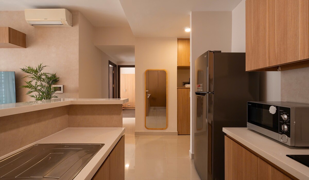 ✨ Khuyến mãi đặc biệt giảm 8% cho thời gian lưu trú dài hạn. Một cuộc sống đô thị tinh tế ngay tại Đường thương mại Nguyễn Lương Bằng. Trung tâm sáng tạo của “Cuộc sống làm việc kết hợp” trên toàn thế giới, nơi Live – Work - Experience tích hợp hài hòa. - 2 phòng ngủ, 2 phòng tắm trong một tòa nhà HOÀN TOÀN MỚI. - Tiện nghi đầy đủ tiện nghi của chúng tôi cung cấp mọi thứ bạn cần. Bạn có thể thư giãn và thư giãn thoải mái với trang trí hiện đại và bầu không khí ấm áp. - Cách SECC 1,4 km. - 1,7 km từ Crescent Mall. - Cách chợ Bến Thành 8,3 km.