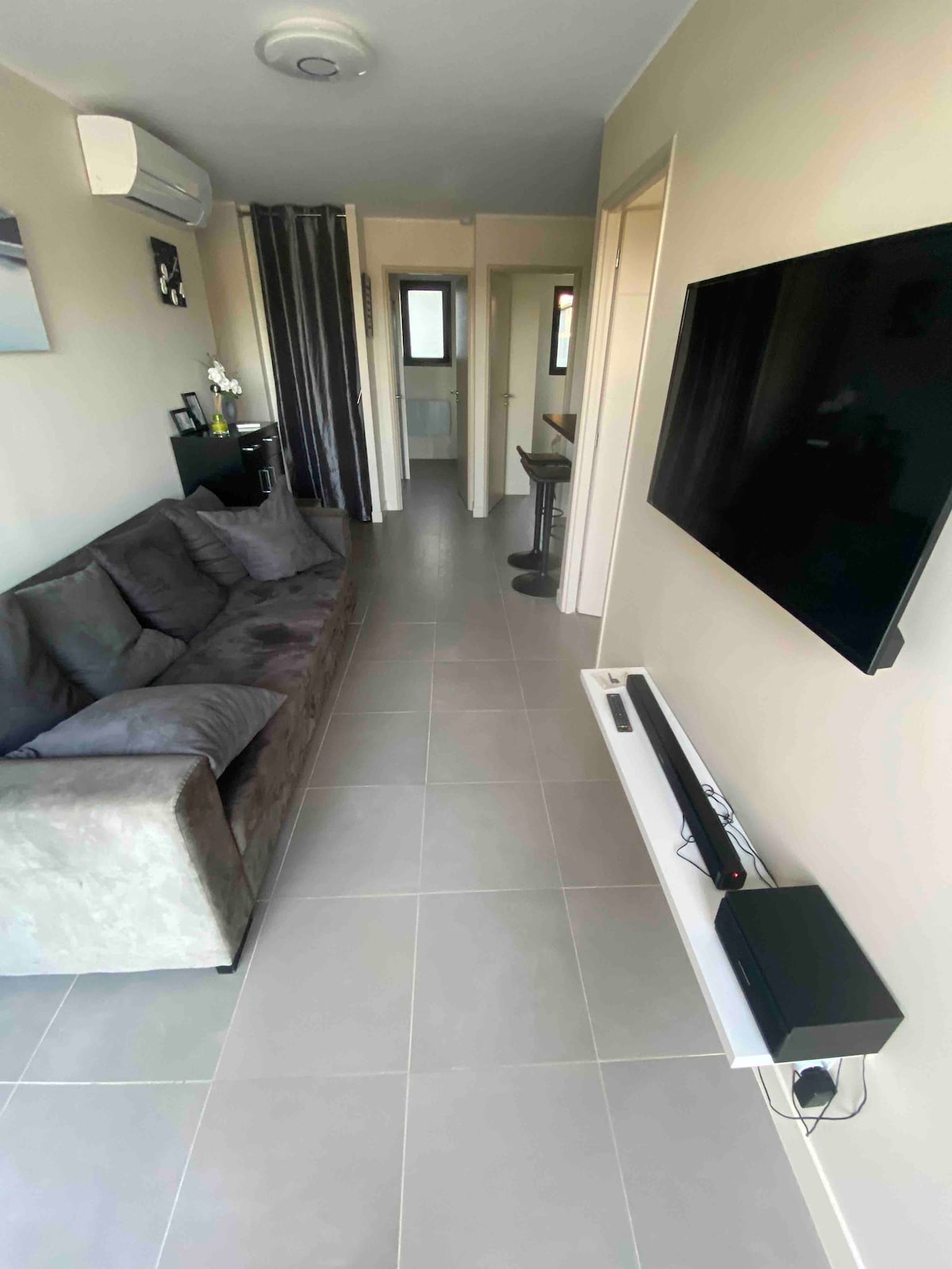 STUDIO POUR 2 PERSONNES – CLIMATISÉ INDEPENDANT CHAMBRE LUMINEUSE , LIT EN 140, AVEC TV , ARMOIRE DRAPS ET LINGE DE MAISON FOURNIS. KITCHENETTE EQUIPEE : CAFETIERE SENSEO, FOUR MICRO ONDE, REFRIGERATEUR, BOUILLOIRE, GRILLE PAIN, VAISSELLE .... CUISSON SUR PLAQUE INDUCTION 2 FEUX . FOUR ELECTRIQUE SALLE DE BAIN WC MACHINE A LAVER LE LINGE, FER ET PLANCHE A REPASSER, SECHE CHEVEUX .. SURFACE DU LOGEMENT 25 M2 DEUX TERRASSES DONT UNE COUVERTE, FAUTEUILS RELAX, TABLE DE JARDIN PARKING PRIVE