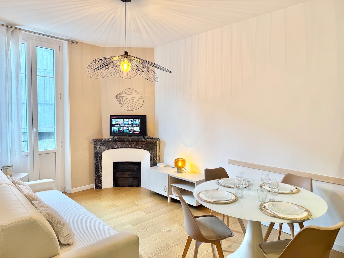 Căn hộ 4 sao hướng biển do kiến trúc sư thiết kế ngay trung tâm Cannes, ban công nhìn ra đường Félix Faure nổi tiếng. ✨Vị trí đắc địa: đối diện Palais des Festivals, cảng, bãi biển và Croisette, chỉ cách 2 phút đi bộ👣 🛍Xung quanh có nhiều cửa hàng và nhà hàng 🛏1 phòng ngủ (giường cỡ king) + giường sofa cao cấp 🚿 1 phòng tắm vòi sen 🛜WiFi tốc độ cao, TV thông minh, Netflix, điều hòa không khí, bếp đầy đủ tiện nghi (Nespresso), máy sấy tóc, bàn là 🛁Khăn trải giường, khăn tắm, xà phòng, dầu gội đầu, cà phê và trà được cung cấp 🔑
