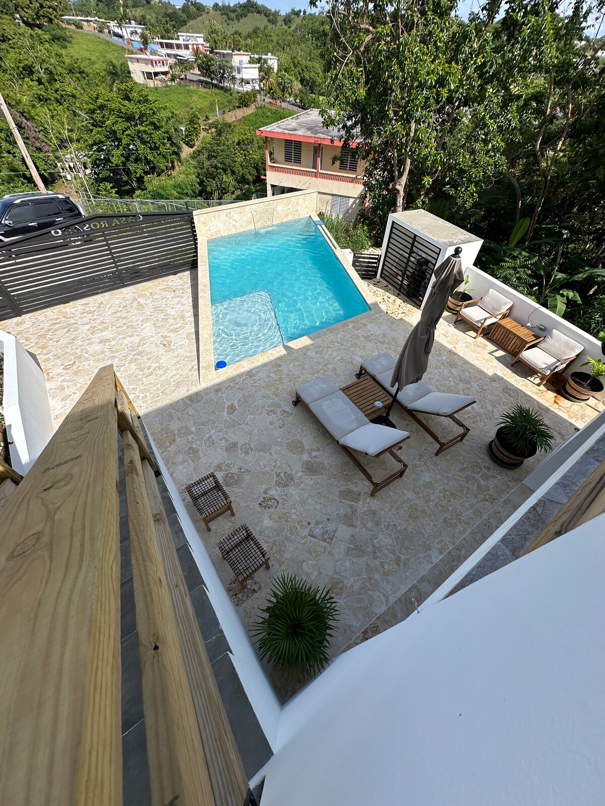 Chào mừng bạn đến với nơi nghỉ ngơi yên bình trên núi ở Rincón! Chỗ ở trên sườn đồi của chúng tôi có 2 phòng ngủ với 3 giường thoải mái với điều hòa lạnh. Hoàn hảo cho gia đình hoặc nhóm nhỏ. Tận hưởng 2 phòng tắm đầy đủ tiện nghi, bếp đầy đủ tiện nghi và tầm nhìn 180 độ ra núi và đại dương. Đảo Desacheo có thể nhìn thấy ở phía chân trời. Bước ra ngoài hồ bơi riêng của bạn, được bao quanh bởi thiên nhiên và không khí núi non trong lành — khung cảnh hoàn hảo để thư giãn và nạp năng lượng. Cách các bãi biển và thị trấn Rincon nổi tiếng một quãng lái xe ngắn.