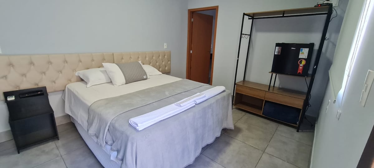 Phòng mới và nằm ở vị trí tốt. Tất cả đều được trang bị đồ nội thất trang nhã giúp không gian trở nên ấm cúng. Khu phố an toàn, yên tĩnh và có vị trí tốt. Gần các điểm chính của Cuiabá.