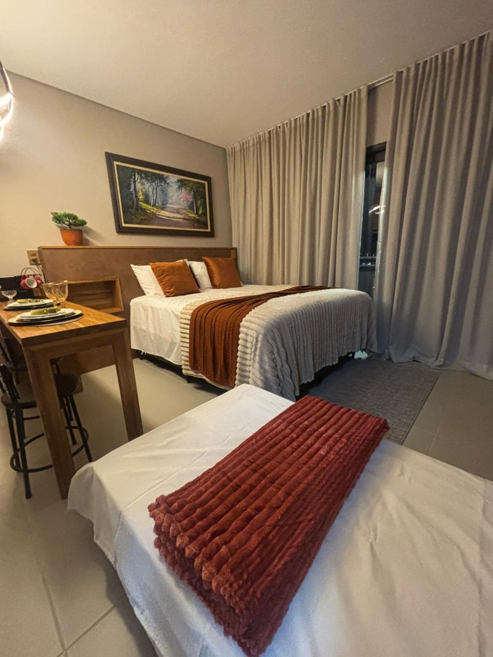 Experimente o conforto e a praticidade deste flat moderno e completo! Nosso flat oferece um ambiente aconchegante com quarto, cozinha equipada e TV integrada, ideal para estadias curtas ou longas. O prédio conta com uma estrutura excelente, incluindo: - Rooftop -Cooworking -Academia -Piscina LOCALIZAÇÃO é outro grande destaque: estamos perto de mercados, shoppings e hospitais, garantindo praticidade total no seu dia a dia. Reserve agora e sinta-se em casa!