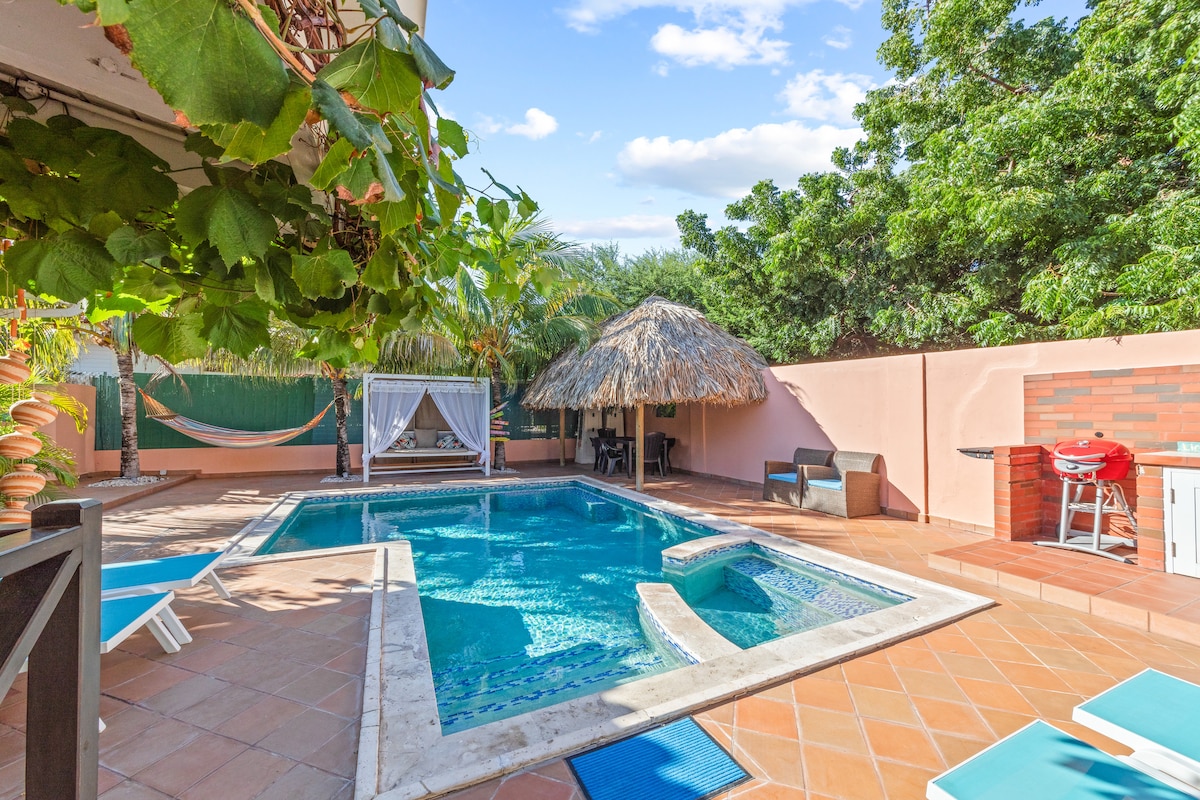 Nhà riêng theo phong cách nghỉ dưỡng tại Jan Thiel - 4.99★ Chủ nhà siêu cấp (hơn500 đánh giá trên 8 ngôi nhà của chúng tôi). Thời gian lưu trú của bạn bao gồm dịch vụ đưa đón khứ hồi, xe SUV EV với sạc tại nhà, HAI trải nghiệm trên thuyền (nửa ngày riêng + hoàng hôn thứ Sáu), thiết lập bãi biển dành riêng tại Zanzibar, Papagayo, Zest & Koko's (bao gồm lối vào + bãi đậu xe), đi bộ đường dài riêng, nhân viên hỗ trợ 24/7, dự trữ hàng tạp hóa (bạn bao gồm phiếu thu), khoản tích lũy bữa tối đầu tiên và hồ bơi riêng có bồn tắm nước nóng. Chỉ cần đến, thở ra và sống cuộc sống dushi.