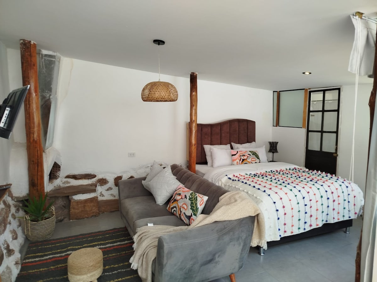 Phòng CÓ một GIƯỜNG ĐÔI và một giường đơn, nhà vệ sinh trong phòng. Vật dụng vệ sinh cá nhân: 3 khăn tắm, một cuộn giấy, hai xà phòng, hai đệm dầu gội đầu. Nó có đèn nến, móc treo tường, bàn (70cm X 70cm) VỚI HAI chiếc ghế, một tấm thảm chùi chân. Nó có một chiếc bình với một bản sao của những bông hoa có nguồn gốc từ khu vực, hai bức tranh được thực hiện bởi các nghệ sĩ Cusco.
