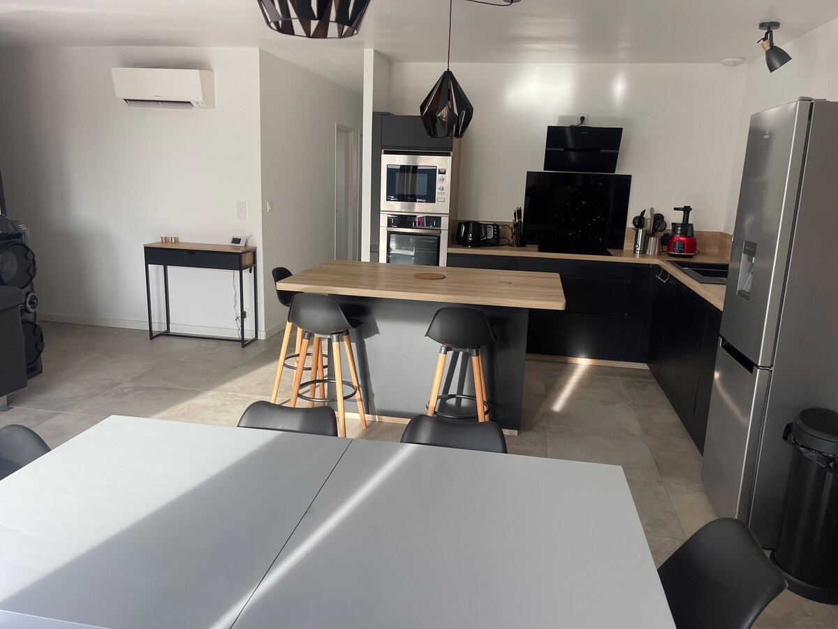 Thư giãn trong chỗ ở yên tĩnh và thanh lịch này cách bãi biển 45 phút. Ngôi nhà mới, được trang bị đầy đủ và không bị bỏ qua, ở vùng nông thôn với khu vườn và sân thượng khép kín cho các bữa ăn ngoài trời của bạn. Bạn sẽ có một nhà bếp đầy đủ tiện nghi mở ra phòng khách, một phòng ngủ rộng rãi với 160 giường và một phòng ngủ phụ với ghế sofa chuyển đổi thành giường đôi, lý tưởng cho trẻ em, thanh thiếu niên hoặc một người độc thân. Một phòng tắm vòi sen và một nhà vệ sinh độc lập hoàn thiện toàn bộ.