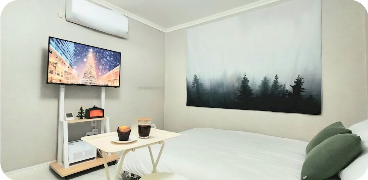 [Trả phòng lúc 12 giờ] # Bãi đỗ xe miễn phí # 2 giường cỡ queen # 1 phút đến Dongseong-ro # Gyo-dong # Bệnh viện Đại học Kyunggi # TV thông minh 55 inch # Ga Banwoldang