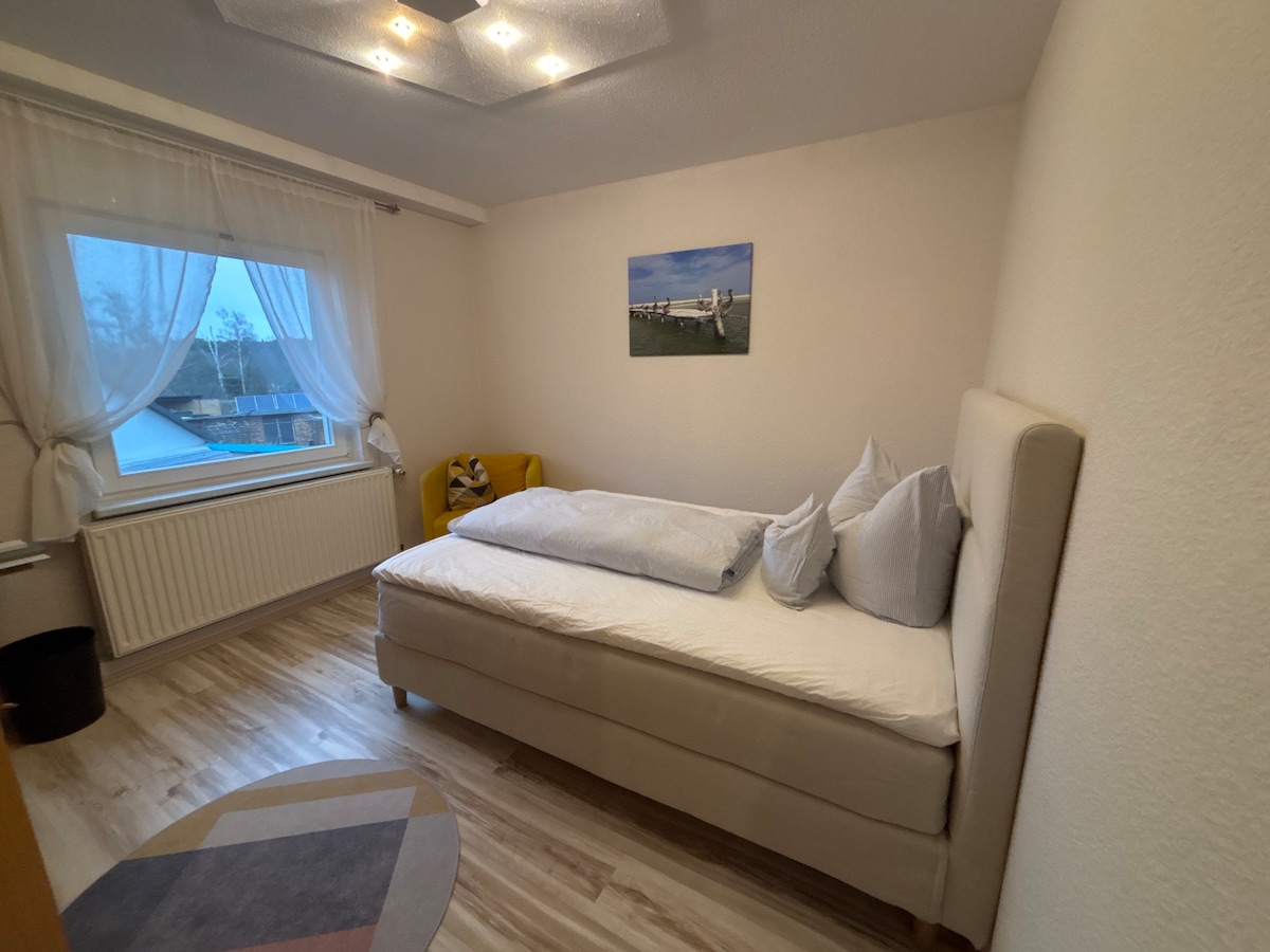 Chúng tôi mời bạn đến với ngôi nhà nghỉ dưỡng xinh đẹp của chúng tôi với khoảng 80 m2 không gian sống & sân thượng. Bếp được trang bị đầy đủ với phòng ăn liền kề, 3 phòng ngủ (tầng trệt/tầng áp mái) và phòng khách ấm cúng mời bạn nghỉ ngơi. Ngoài phòng tắm hiện đại (tầng trệt) có vòi sen, bồn tắm, hệ thống sưởi dưới sàn và máy sấy tóc, bạn cũng có thể sử dụng nhà vệ sinh riêng (DG). Đối với "những đứa trẻ", một giàn nhún lò xo, xích đu, hộp cát, nhà vui chơi với cầu trượt và sân chơi có sẵn trong vườn.