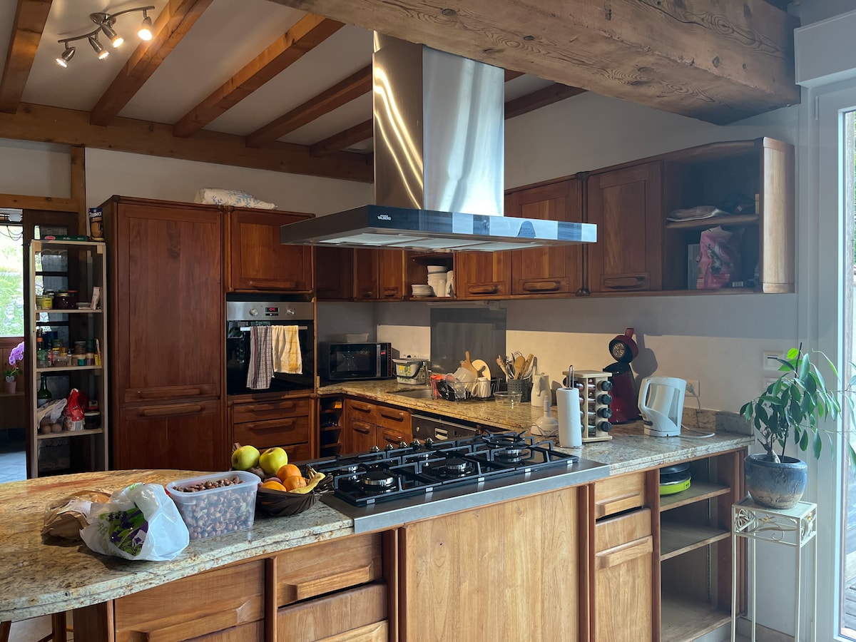 - Logement moderne, annexe villa, entrée séparée, idéal pour couple ou amis. - plein-pied: Chambre, 1 canapé-lit 140/200 et 1 lit 90/180, lit bébé sur demande. - Cuisine ouverte, lumineuse, plaques induction, four micro-ondes, machine à laver. - Niveau inférieur: Douche/WC , machine à laver/ sécher à disposition. - terrasse et véranda à plein-pied, accès jardin privatif. - Chien bienvenu: sur demande.