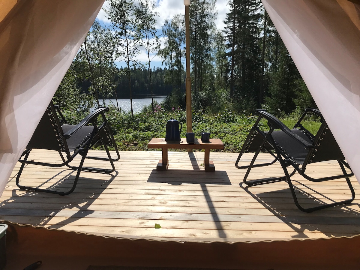Hãy đến với Källberg Forest Escape và tận hưởng kỳ nghỉ của bạn trong một chiếc lều cắm trại ấm cúng trên một chiếc giường thoải mái và tầm nhìn đẹp. Thức dậy với tiếng chim hót và uống cà phê trên sân thượng nhìn ra rừng và núi. Dành cả ngày với một cuốn sách trên võng, đi bộ đường dài trên những con đường mòn gần đó, chèo thuyền kayak trong hồ hoặc một số hoạt động khác của chúng tôi. Chúng tôi cũng cung cấp phòng xông hơi bằng gỗ và bồn tắm nước nóng mà bạn có thể tận hưởng trong khi mặt trời lặn!