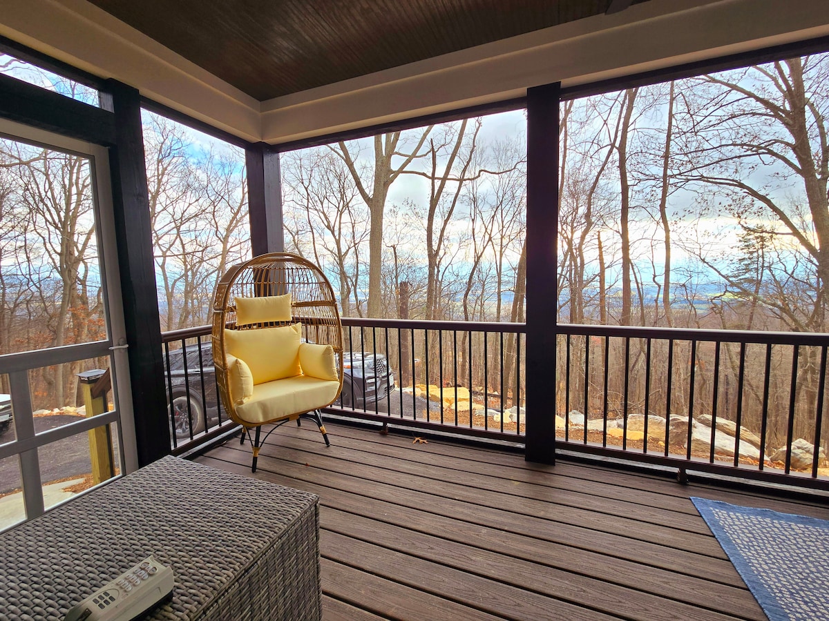 New luxury Chalet with the best breathtaking views in all of Shenandoah. Hike right into Shenandoah National park, the Appalachian trail, and waterfalls! High speed internet, comfortable lounging sofa, smart TV, stocked kitchen, fire pit, washer/dryer, Weber grill, and a large deck with incredible views. Three bedrooms with queen beds, two bathrooms, open living and dining areas. Family and pet friendly. Book with confidence, Superhost with 1,100+ Five Star reviews.