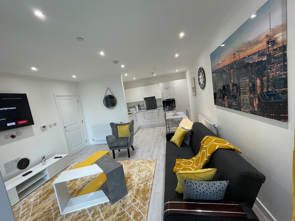 Enjoy this centrally-located place in the heart of the city, this opulent apartment as got a private terrace, living room and one of the room has direct access to the terrace. Apartment is 5 minutes walk to the shopping Center which comprises of retail stores. Apartment is within close proximity to the 02 Arena and London city attractions/Westend. Fully equipped 24hours gym for guests, Netflix and Amazon prime, unlimited fast broadband. Kitchen is fully equipped with all house hood utensils.