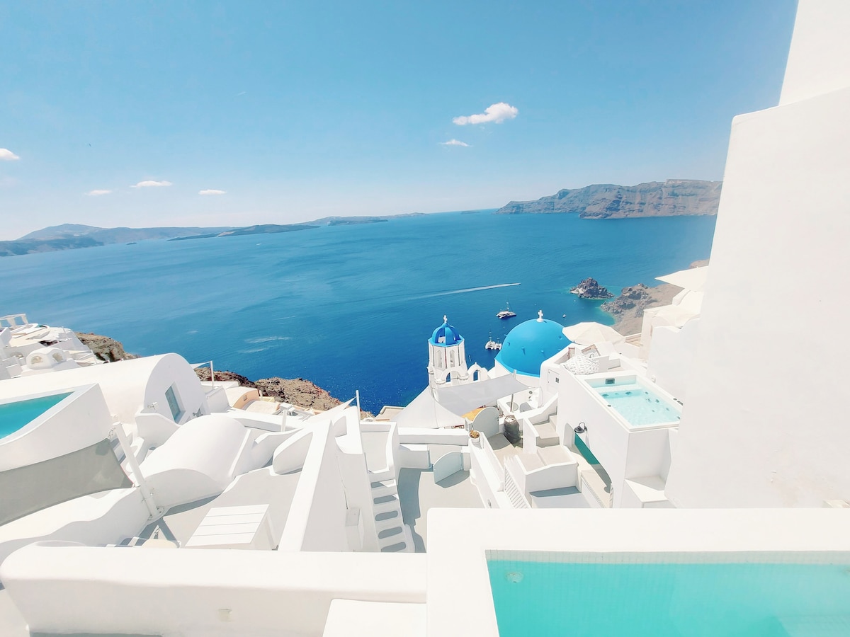 Santorini blue, caldera view, hồ bơi riêng