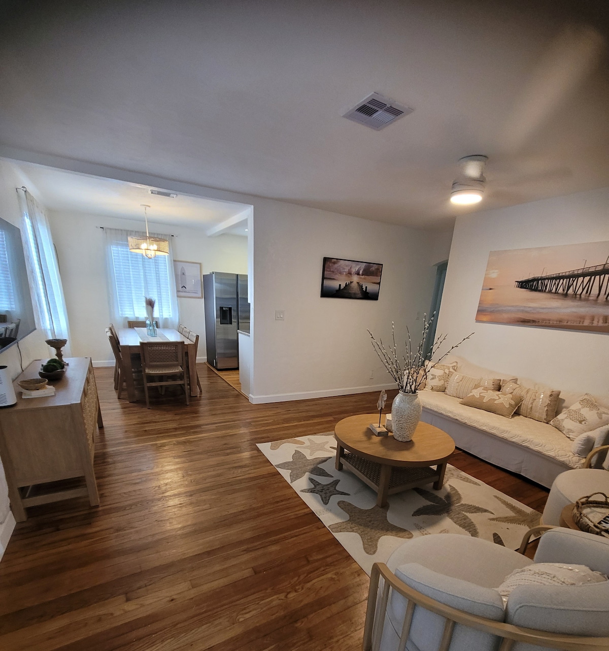 HAI DÃY NHÀ ĐẾN BÃI BIỂN CÔNG CỘNG! Nhà nghỉ dưỡng hiện đại ven biển được cải tạo hoàn toàn ngay trung tâm Bãi biển Deerfield! Hàng tấn không gian với sân sau lớn/có hàng rào, không gian xanh lớn và lò nướng, máy giặt - máy sấy: tất cả đều được sử dụng cá nhân và độc quyền của riêng bạn. Đi bộ hai dãy nhà đến bãi biển công cộng, bến tàu, lối đi bộ, cuộc sống về đêm và các nhà hàng tuyệt vời. Lướt sóng, thuyền, câu cá, bơi trong đại dương. Hai phòng ngủ sang trọng và sạch sẽ và hai phòng tắm, + kéo ra giường sofa queen. Khu vực ăn uống trong phòng tắm nắng sáng sủa. Phòng trò chơi Bonus Ping Pong!