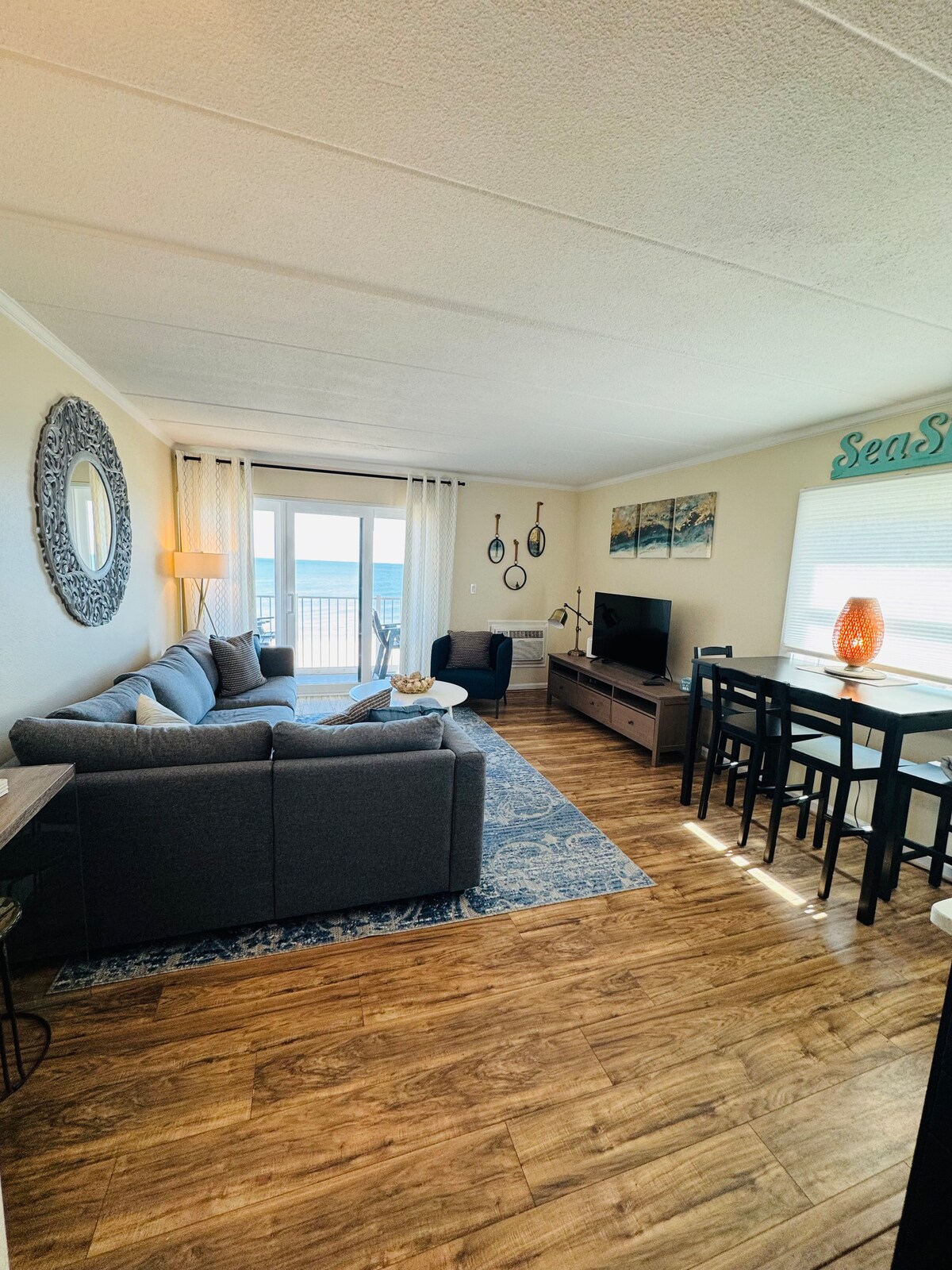 Bước ra bãi biển! Căn hộ chung cư được cải tạo hoàn toàn, sáng sủa, hiện đại, sạch sẽ với tầm nhìn ra ban công đại dương. Vị trí yên tĩnh của thành phố North Ocean với khoảng cách đi bộ đến các nhà hàng, xe buýt, 7-11, sân golf mini, rạp chiếu phim, công viên, v.v. Thiết bị và đồ nội thất hoàn toàn mới. Wifi miễn phí, Giường cỡ King, TV 60" & 40". Kéo ghế sofa Queen ra, phòng tắm đầy đủ hoàn toàn mới. Máy giặt và máy sấy trong căn hộ. Trạm cà phê Keurig, trạm sạc iPhone. Ban công riêng. Chỗ đỗ xe miễn phí.
