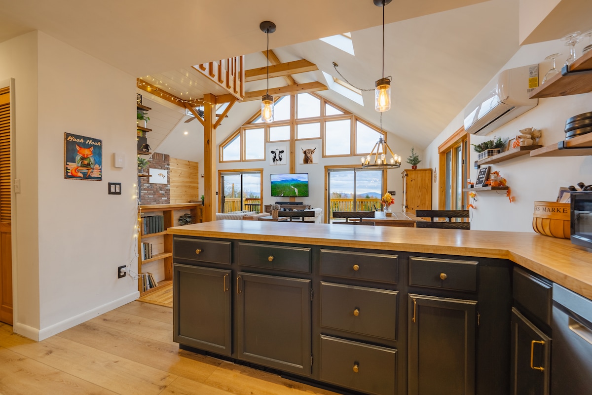 Cabin rộng rãi với tầm nhìn ra núi và bếp củi