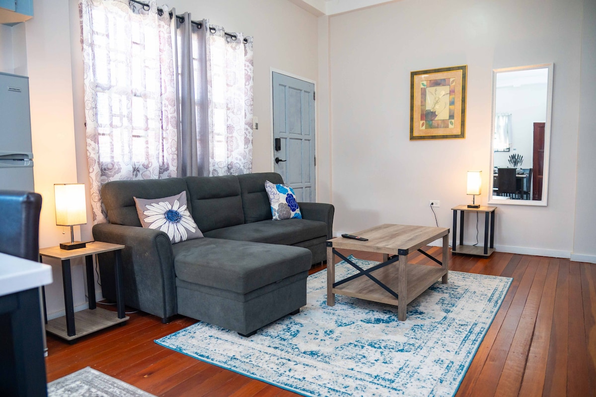 Chào mừng bạn đến với căn hộ 2 phòng ngủ ấm cúng của chúng tôi tại Herstelling East Bank Demerara! Được thiết kế hoàn hảo cho sự thoải mái, không gian này mang đến một kỳ nghỉ thư giãn với các tiện nghi hiện đại. Tận hưởng nhà bếp đầy đủ tiện nghi, khu vực sinh hoạt thoải mái và hai phòng ngủ rộng rãi với ga trải giường sang trọng. Nằm trong khu phố yên tĩnh, lý tưởng cho những ai muốn thư giãn nhưng vẫn ở gần các điểm tham quan địa phương và Georgetown. Cho dù bạn đến đây để công tác hay giải trí, căn hộ của chúng tôi cung cấp một ngôi nhà hoàn hảo xa nhà!