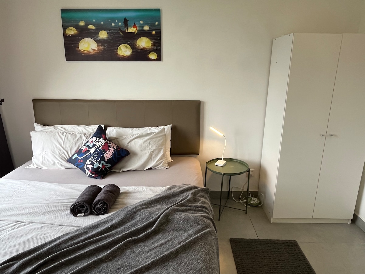 Căn hộ tối giản 1 phòng ngủ này có nội thất nhẹ nhàng, mang lại cảm giác sạch sẽ và hiện đại. Phòng ngủ có giường queen với điều hòa không khí. Khu vực sinh hoạt được trang bị chỗ ngồi ấm cúng, TV thông minh và Wi-Fi nhanh. Bếp nhỏ gọn (có tủ lạnh, lò vi sóng, ấm đun nước và dụng cụ). 🏙️ Nằm chỉ 10 phút đến KLIA và 5 phút từ Mitsui Outlet Park, với các tiện nghi của tòa nhà như hồ bơi, phòng tập thể dục và an ninh 24/7, đó là điểm dừng quá cảnh lý tưởng của bạn hoặc nơi nghỉ dưỡng ngắn trong thành phố.