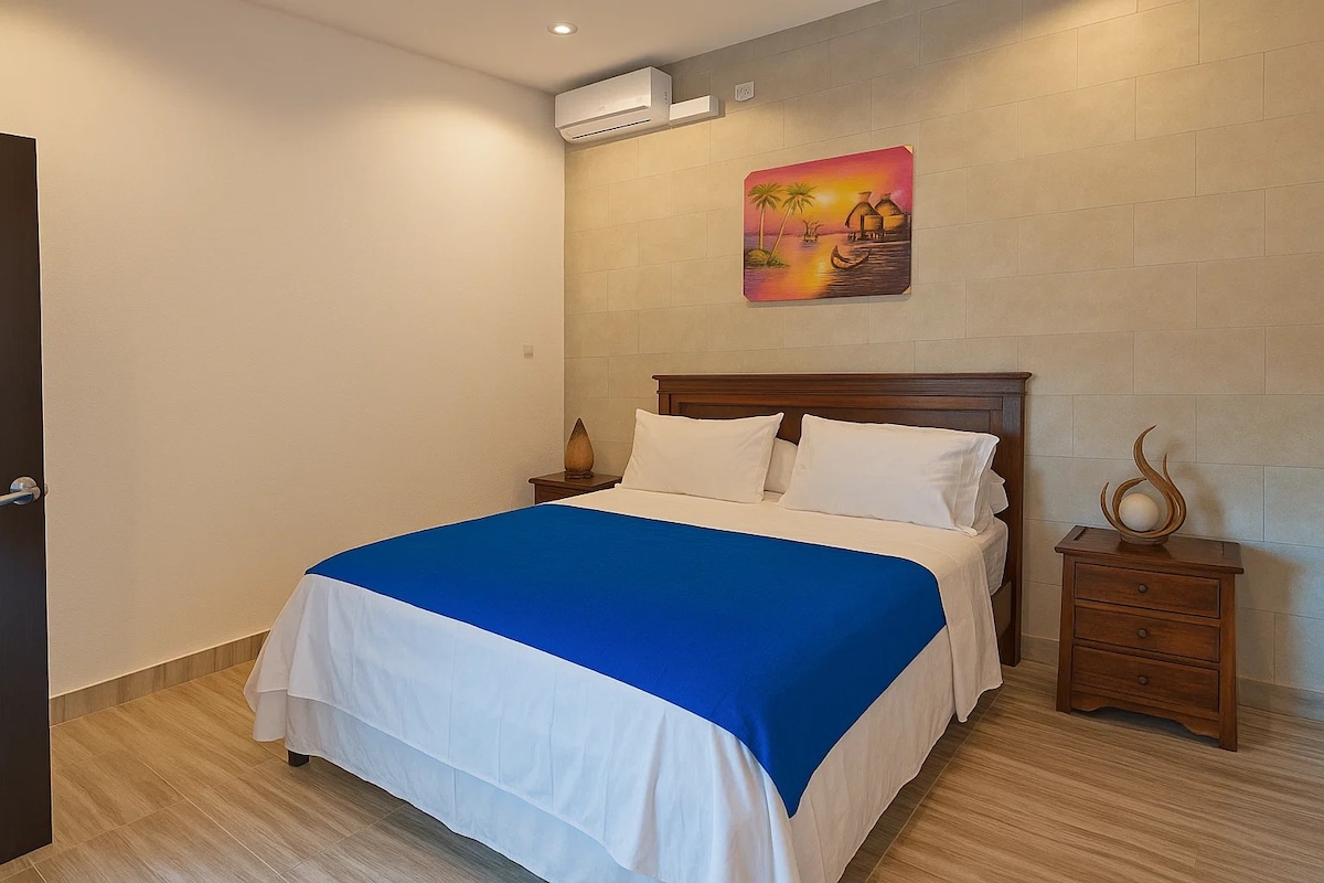 Cả nhóm sẽ dễ dàng tiếp cận mọi thứ từ địa điểm nằm ở trung tâm này. Kích thước phòng 28 m2 không bao gồm phòng tắm khép kín riêng. TV với MTM 60 kênh phủ sóng cả trong nước và quốc tế Điều hòa không khí cá nhân, quạt và máy nước, tủ lạnh, két an toàn. Cơ sở pha trà và cà phê Wifi / internet miễn phí 250 MBPS. Cơ sở vật chất ngoài phòng Hồ bơi riêng 14m x 6m với ghế bành và khăn tắm. Quầy bar phục vụ bữa sáng nhỏ, nhà bếp. Khu vực văn phòng và lễ tân.