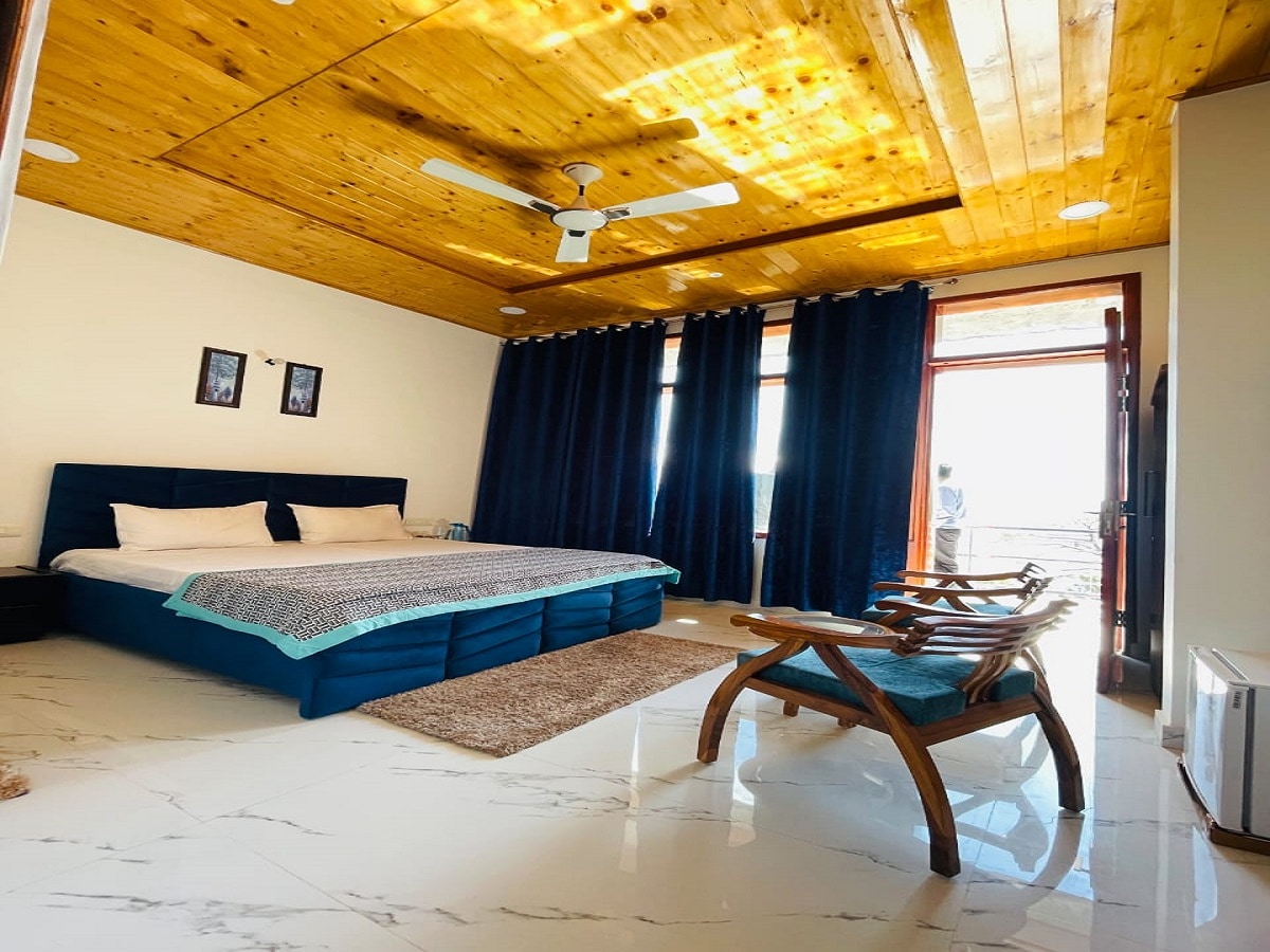 A spacious 1 BHK family suite in Kasauli, offering a cozy bedroom, comfortable living area, modern bathroom, and a private balcony with serene pine-hill views. Ideal for families, couples, and peaceful mountain getaways.