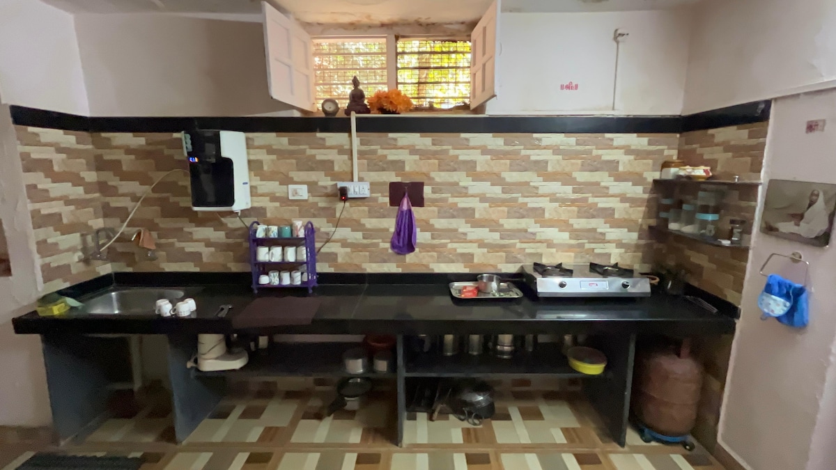 Welcome to our cozy and modern 2BHK house, perfect for families or groups of friends looking for a comfortable and relaxing stay. This spacious house features two comfortable bedrooms with Queen mattress, living room, and a functional kitchen, making it ideal for a memorable vacation. Our house is equipped with all the amenities you need for a comfortable stay, including Wi-Fi, TV with Jio and OTT, 6 hrs Power backup, Air cooler, Iron box, Washing Machine, Hair Dryer etc
