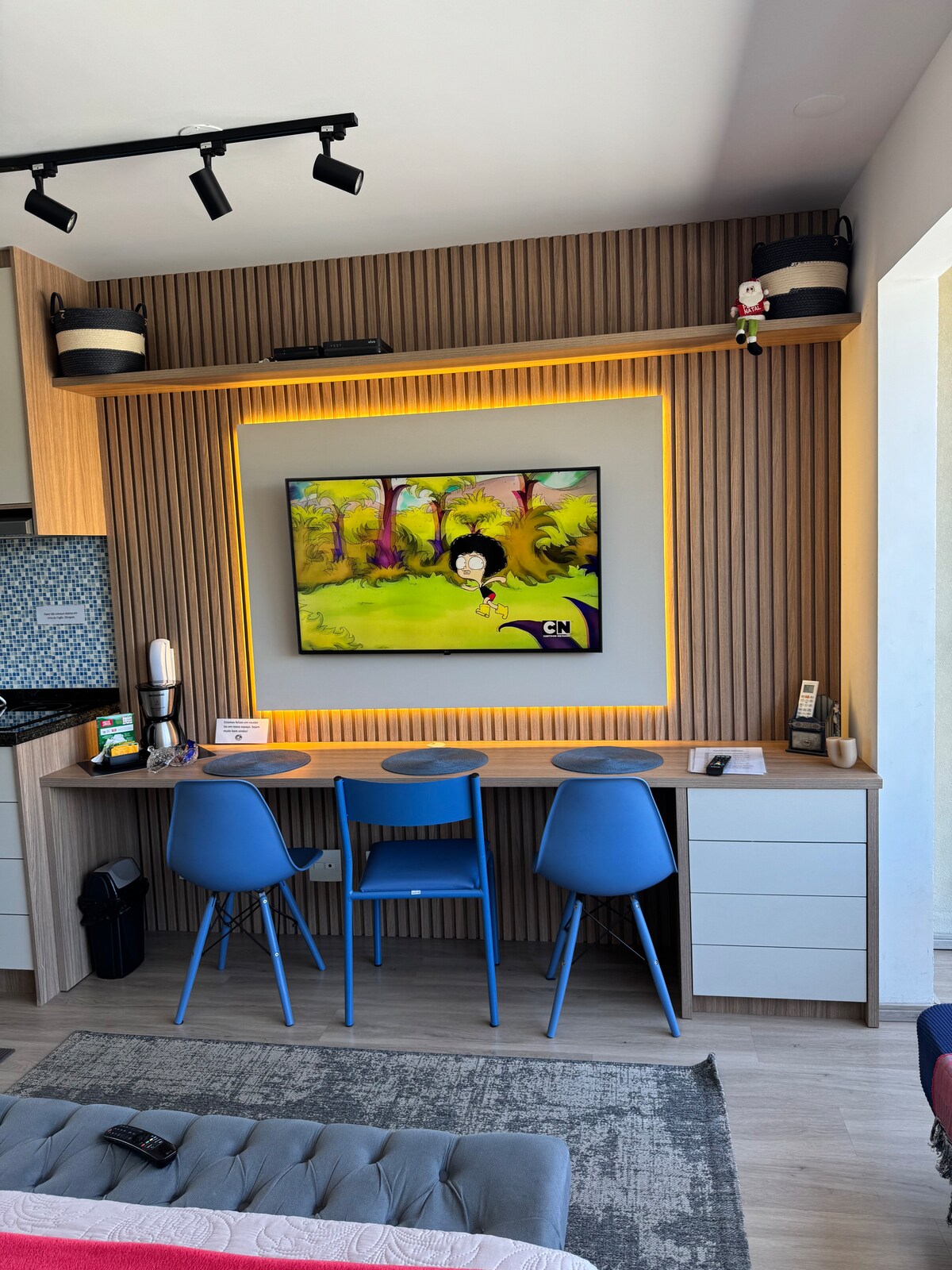 Esse apartamento une conforto, praticidade, economia e diversão! Localizado perto de shopping, mercados, restaurantes, metrô e consulado, ele acomoda até 4 hóspedes com utensílios completos. Para o entretenimento, TV Smart com streaming, internet de 500 MB, PS4 com 3 jogos e uma charmosa área do café. E claro, cada hóspede recebe um mimo especial, porque cada cliente é único e merece ser bem recebido. Adoramos pets, mas neste local não temos espaço para acomodá-los. Quem sabe no próximo...