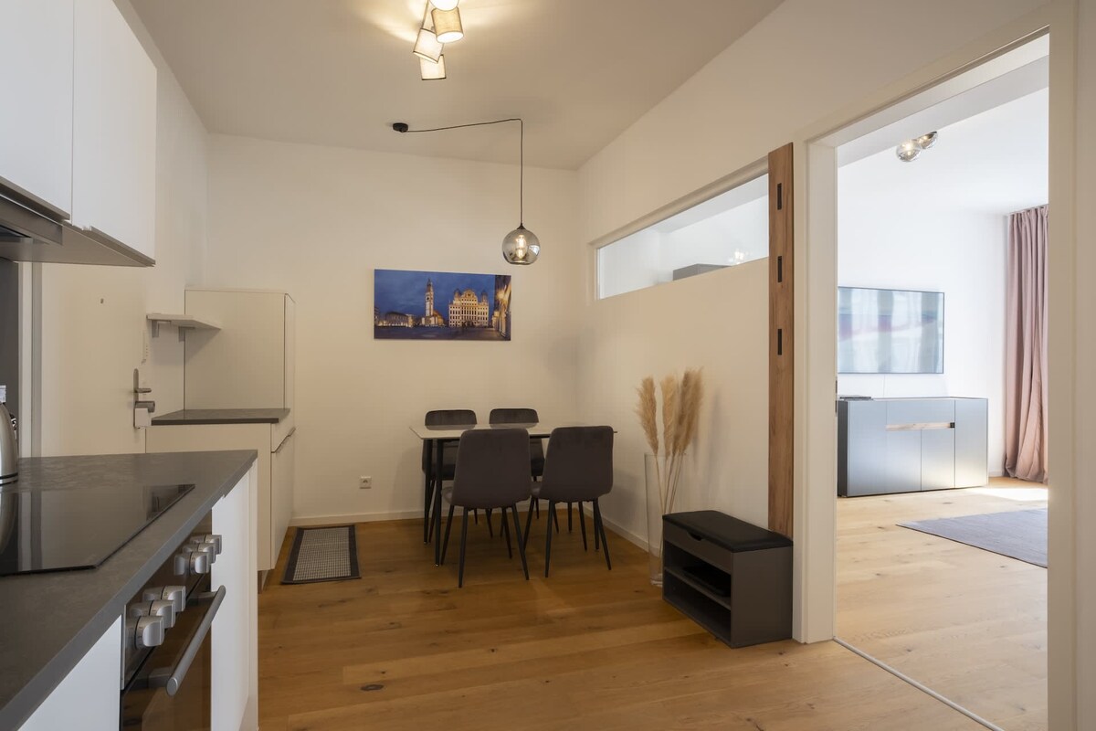 Căn hộ nghỉ dưỡng tuyệt vời, lý tưởng cho các cặp đôi, gia đình hoặc du khách thành phố muốn tận hưởng sự tinh tế và lợi thế của vị trí trung tâm thành phố của chúng tôi. Trên 84 m2 không gian sống, bạn sẽ tìm thấy chỗ ở hàng đầu của chúng tôi, chỉ cách tòa thị chính 200 m, trên khu vực dành cho người đi bộ, nơi mời bạn ghé thăm các điểm tham quan, quán bar và nhà hàng và khu phố cổ. Căn hộ đã được hiện đại hóa theo tiêu chuẩn cao vào đầu năm 2024 và cũng cung cấp nhiều không gian và sự thoải mái cho thời gian ở lâu hơn cho tối đa 6 người