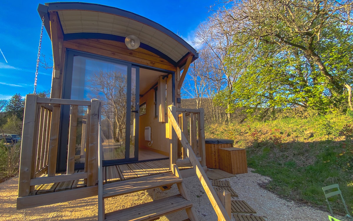Nép mình giữa những ngọn đồi yên bình của Burgundy với những vườn nho Beaune chỉ cách một tảng đá, The Writer 's Cabin là nơi lánh mình ấm cúng hoàn hảo để xả hơi, giảm tốc độ và nạp năng lượng. Để có một kỳ nghỉ lãng mạn, hãy dành thời gian một mình hoặc làm việc trong một dự án sáng tạo. Thư giãn khi bạn tận hưởng khung cảnh của khu rừng, chiêm ngưỡng bầu trời vô cùng đầy sao mà chúng tôi đến đây từ bồn tắm nước nóng riêng của bạn hoặc đọc sách trên ghế đu trên boong hoặc cuộn tròn trên ghế sofa bên trong trước lò đốt củi.