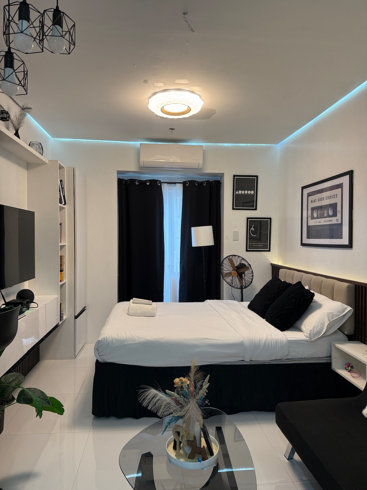 Bring the whole family to this great place with lots of room for fun. We prioritize the comfort, industrial minimalist style, cleanliness and high standard of service. Unique stylish bedrooms & living area. 3 aircondition,55" Smart tv, gaming area, Xbox console, board games,Netflix & Karaoke the whole night. NO Quiet time THE SPACE What makes us unique? The unit is located @ the amenity area, 5 steps steps going to swimming pool, Fitness Gym and Kiddie playgorund and accessible them for FREE
