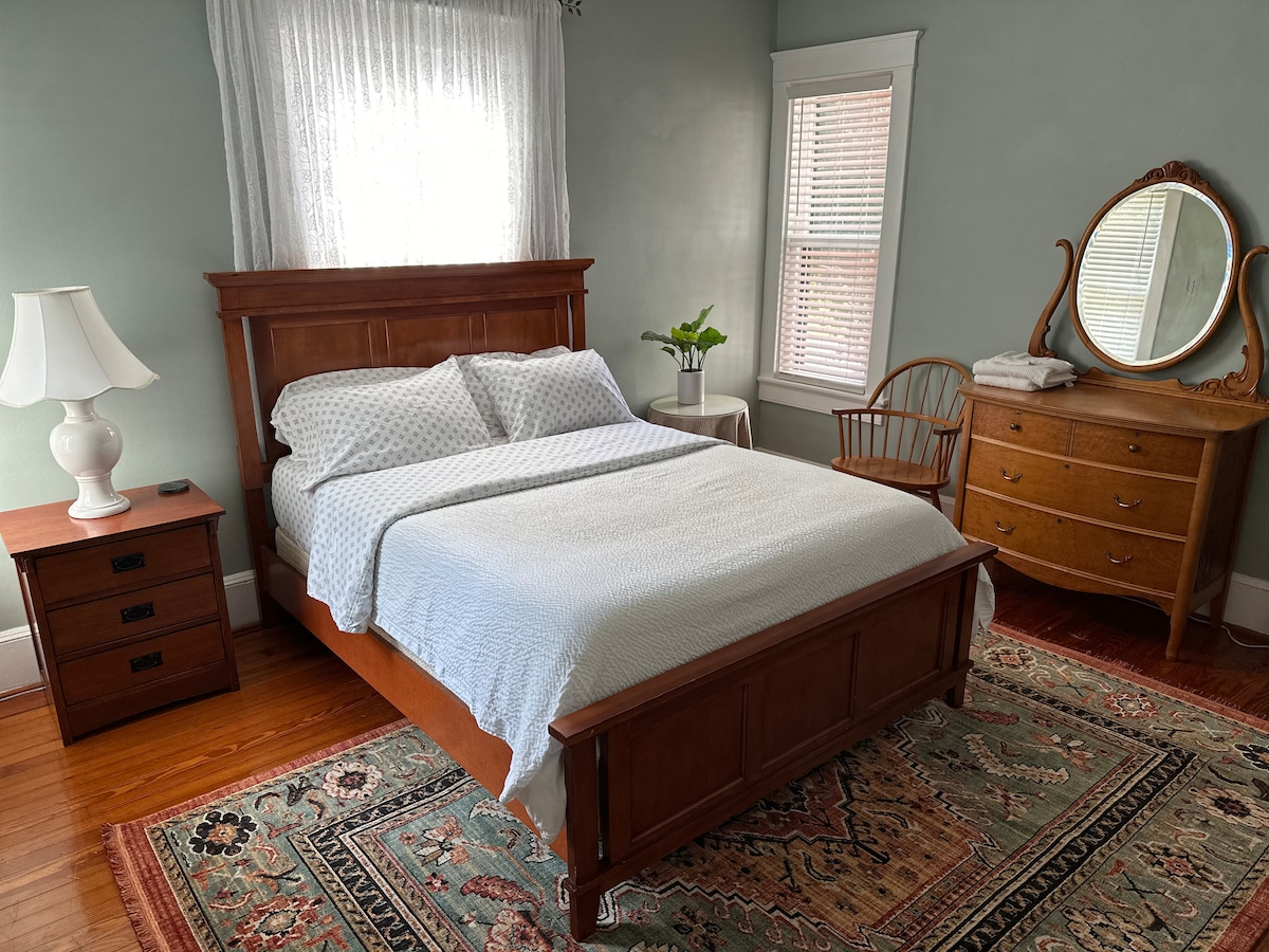 Nằm trong Khu lịch sử Poplar Lawn, Gilliam House là một ngôi nhà lịch sử xinh đẹp từ năm 1849 với tầm nhìn tuyệt vời ra Công viên Poplar Lawn, trước đây được gọi là Công viên Trung tâm. Ở trong một căn phòng riêng, sang trọng trong ngôi nhà của gia đình chúng tôi nằm cách khu ăn uống, mua sắm và bảo tàng của Old Towne Petersburg chỉ vài dãy nhà. Thư giãn trên hiên trước lớn, hiên trên lầu hoặc tận hưởng lửa ở sân sau. Xin lưu ý rằng chúng tôi có chó mà chúng tôi giữ có cổng khi có khách. Phòng này nằm trên tầng hai của nhà chúng tôi.