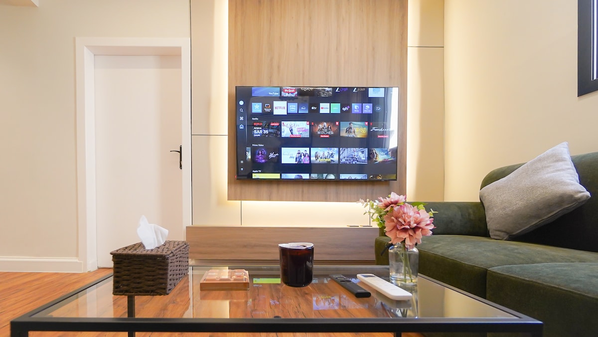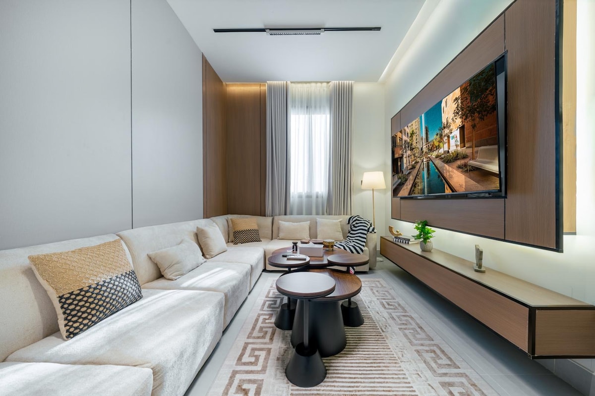 Căn hộ 1 phòng ngủ hiện đại ở Hittin, một trong những địa điểm đắc địa của Riyadh, cách Boulevard City và các quán cà phê hàng đầu vài phút. Được thiết kế để mang lại sự thoải mái và dễ dàng với tính năng tự nhận phòng và hệ thống thông minh đầy đủ. Có khu vực sinh hoạt ấm cúng, phòng ngủ thoải mái, TV thông minh 85” và lò sưởi điện thanh lịch để tạo không khí thư giãn. Bếp được trang bị đầy đủ tiện nghi với lò nướng, lò vi sóng, bếp điện, máy rửa bát và máy giặt. Sạch sẽ, phong cách và lý tưởng cho các cặp vợ chồng, khách đi công tác và thời gian ở ngắn hoặc dài.