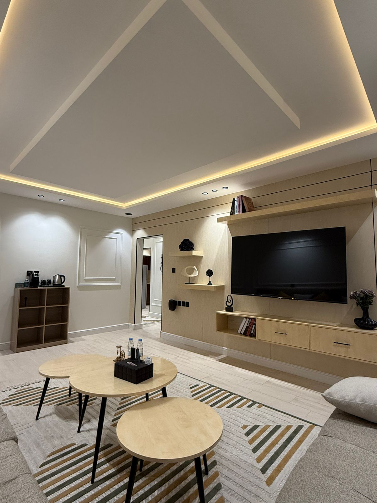 A stylish one-bedroom apartment with smart check-in, located in the heart of North Riyadh (Al Aqiq district). Perfectly situated close to the city’s most vibrant attractions and Riyadh Season events - Boulevard City - Winter Garden - Riyadh Park Mall - King Abdullah Financial District (KAFD) - Solitaire Mall - Diplomatic Quarter (DQ) 🛋️ Apartment Features: - Smart TV with subscriptions (Netflix, Shahid, YouTube) - Unlimited high-speed internet - Equipped kitchen(fridge, coffee machine, kettle)