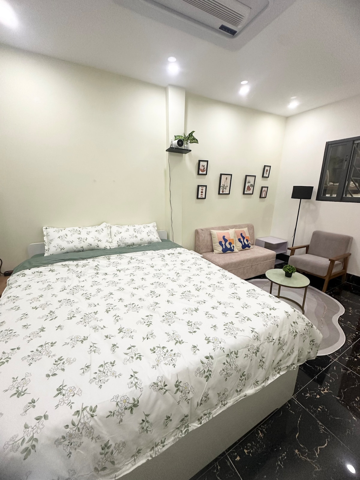 Studio apartment with unique design located in a lovely alley in Saigon Center. The studio is located on the 2nd floor of a townhouse, of which the 1st floor is the lovely BeanThere cafe. It only takes a few minutes to reach attractions and nightlife activities. Besides, there is also a kitchen to cook basic meals. One breakfast (01 food and 01 drink) / guest / night in Beanthere cafe. We offer free housekeeping for bookings longer than 4 nights. If needed, you can notify 1 day in advance.