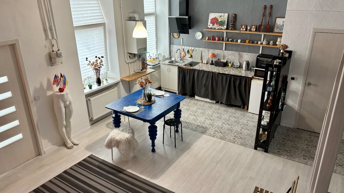 Căn hộ studio cho hai người ở trung tâm Pavlograd. Các chuyến công tác hoặc gia đình, hẹn hò lãng mạn, tiệc tùng yên bình hoặc chụp ảnh và sáng tạo nội dung Nếu bạn đang tìm kiếm một khách sạn ở Pavlograd hoặc muốn thuê một căn hộ cho thuê – chỗ ở của chúng tôi phù hợp về mọi mặt Việc lấp đầy căn hộ được thiết kế cho một THỜI GIAN LƯU TRÚ thoải mái cho hai người lớn + một trẻ em. Tự nhận phòng bất cứ lúc nào Đối với bầu không khí đặc biệt, có một máy chiếu với bộ giải mã TV Android
