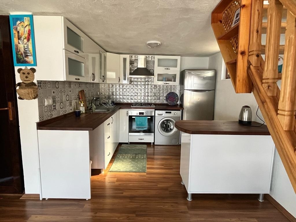 Một nơi cách xa thế giới, gần Derya, một ngôi nhà thôn quê được xây dựng hoàn toàn bằng đá, hòa mình vào thiên nhiên, với những cây ô liu hàng trăm năm tuổi trong vườn. Tôi tin rằng đây không phải là một nơi mà những người đang tìm kiếm sự thoải mái của một thành phố lớn, khu nghỉ dưỡng hoặc khách sạn sẽ hạnh phúc, mà là một nơi mà những người muốn thư giãn và bình tĩnh sẽ rất hạnh phúc. Những người sợ nhện, kiến, v.v. không nên đến vì chúng tôi muốn họ biết rằng chúng tôi đã chiếm chỗ của họ. Lưu ý: Thật không may, chúng tôi đã phải trả tiền cho củi trong mùa đông do điều kiện của đất nước chúng tôi.